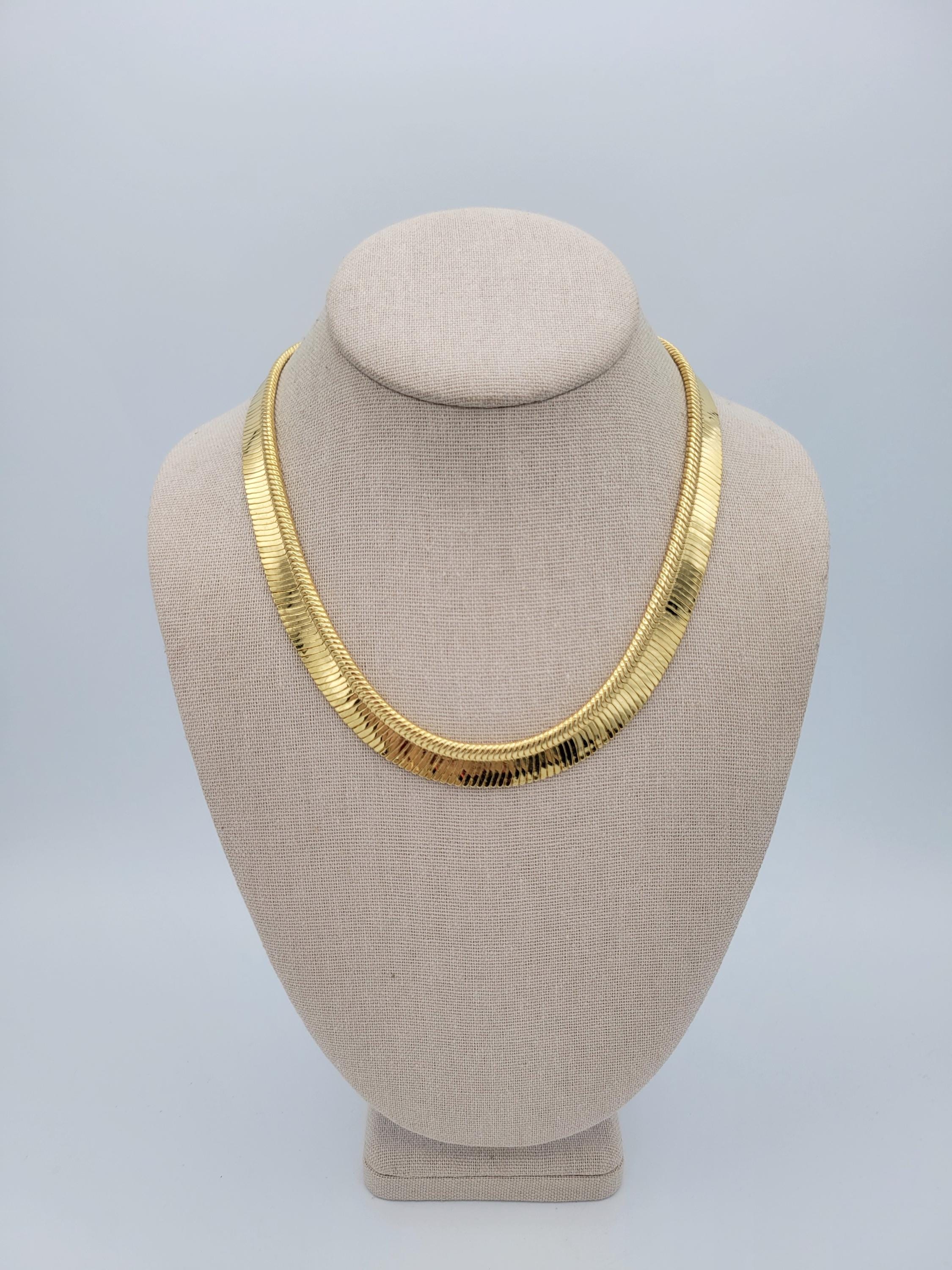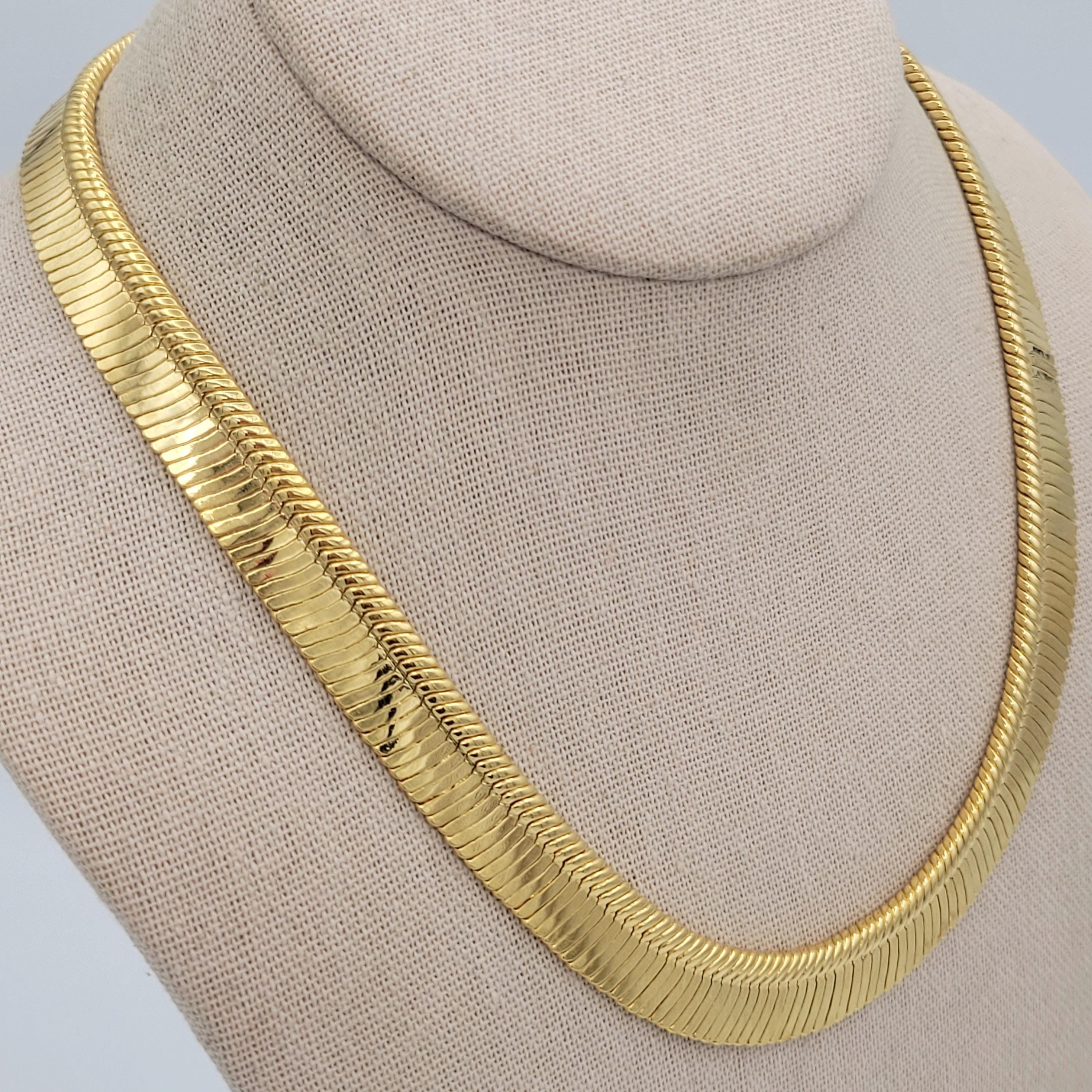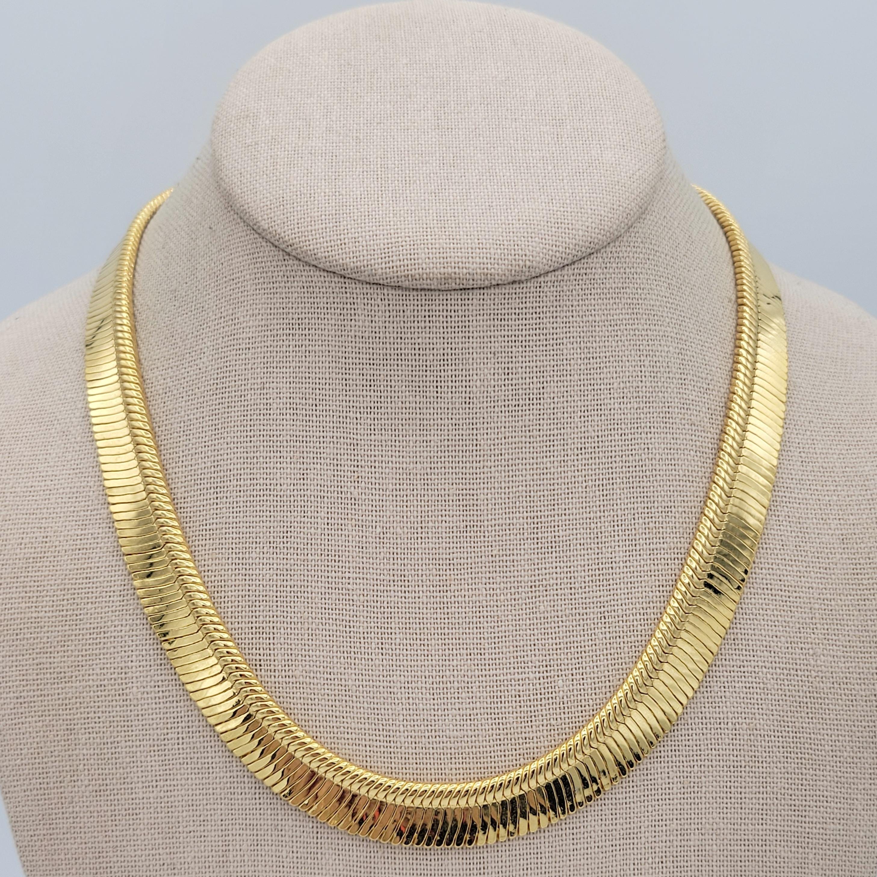 This shining chain necklace is a versatile addition to your jewelry wardrobe. The gold-tone chrome-finished chain has a herringbone pattern & is 1/2" wide. The chain secures with a lobster claw clasp & is in excellent, brand-new condition.