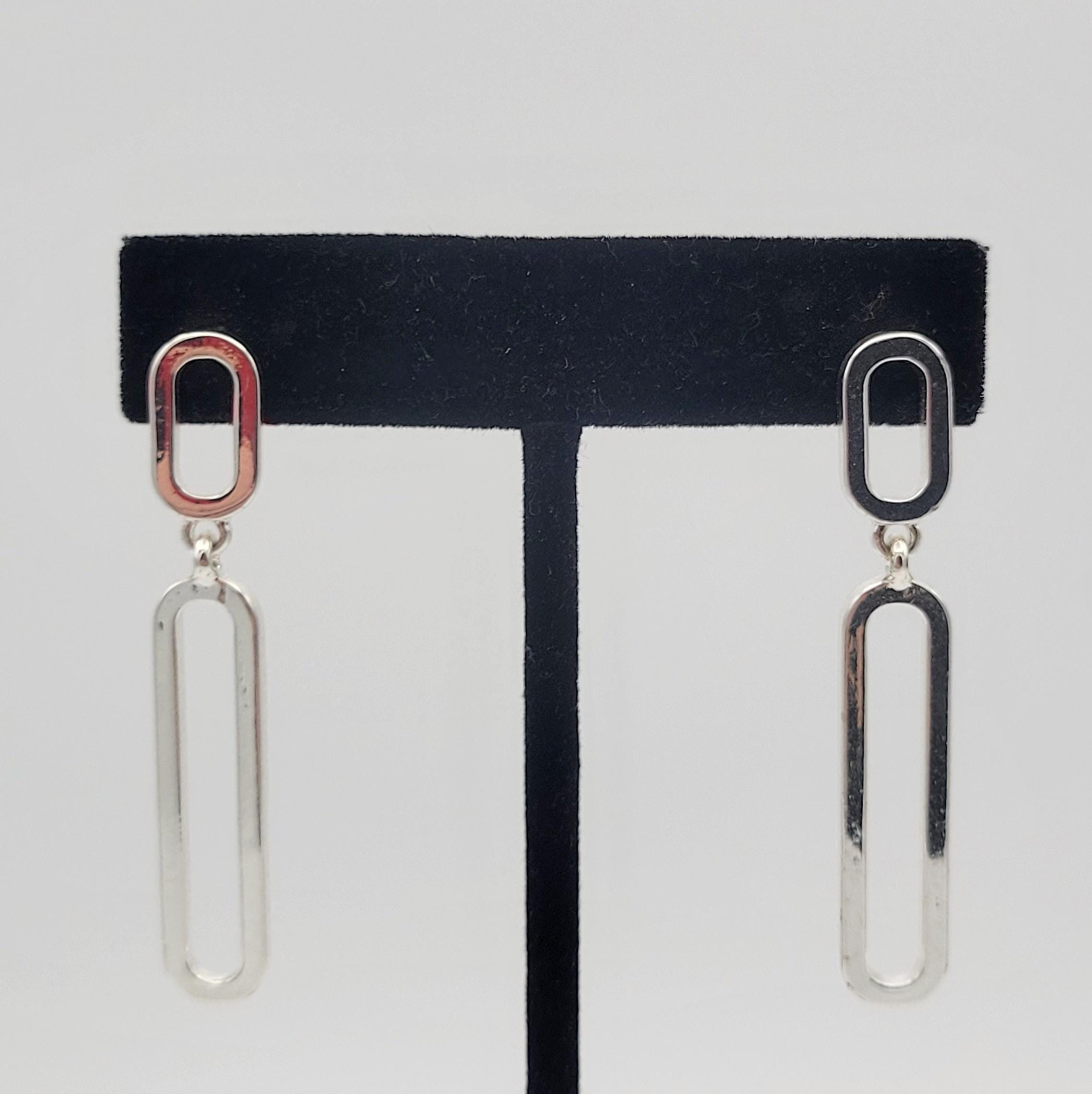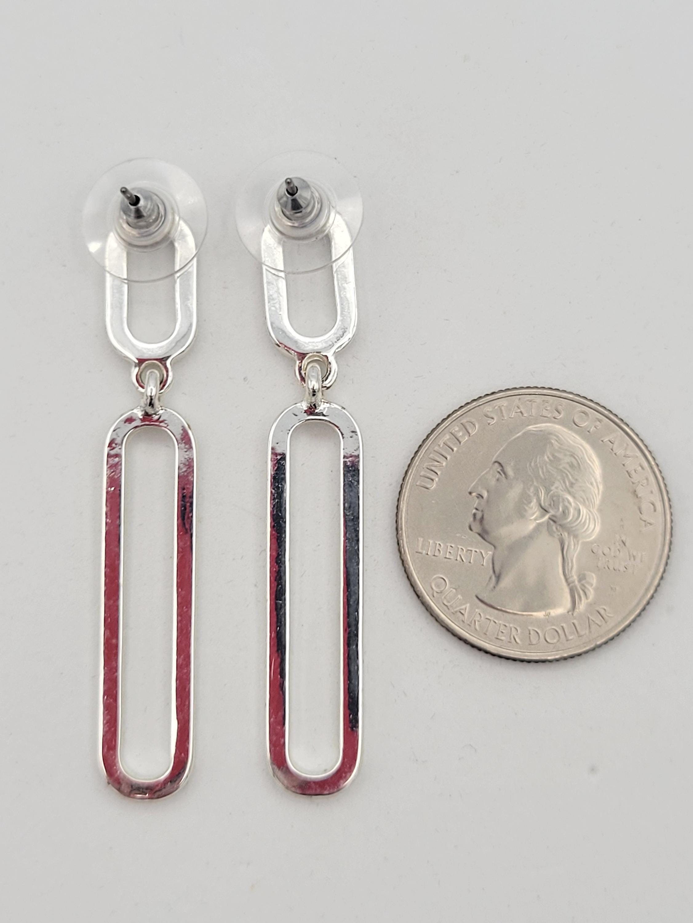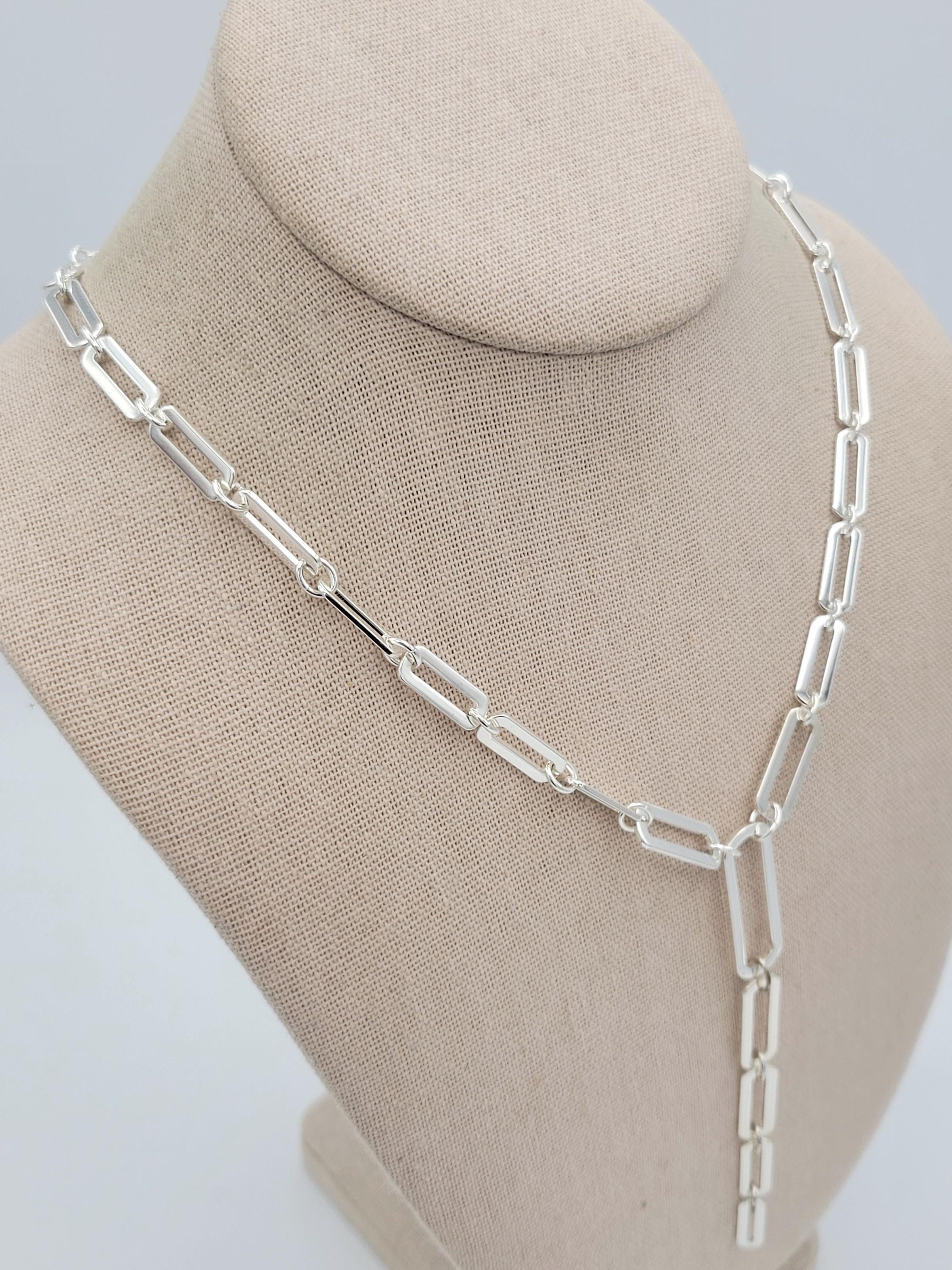 This shining jewelry set makes great statement pieces to add to your jewelry wardrobe. All 3 pieces are made with silver-tone openwork oval links that have a chrome finish. The Y-necklace secures with a lobster claw clasp & is adjustable for length. This set is in excellent, brand-new condition.