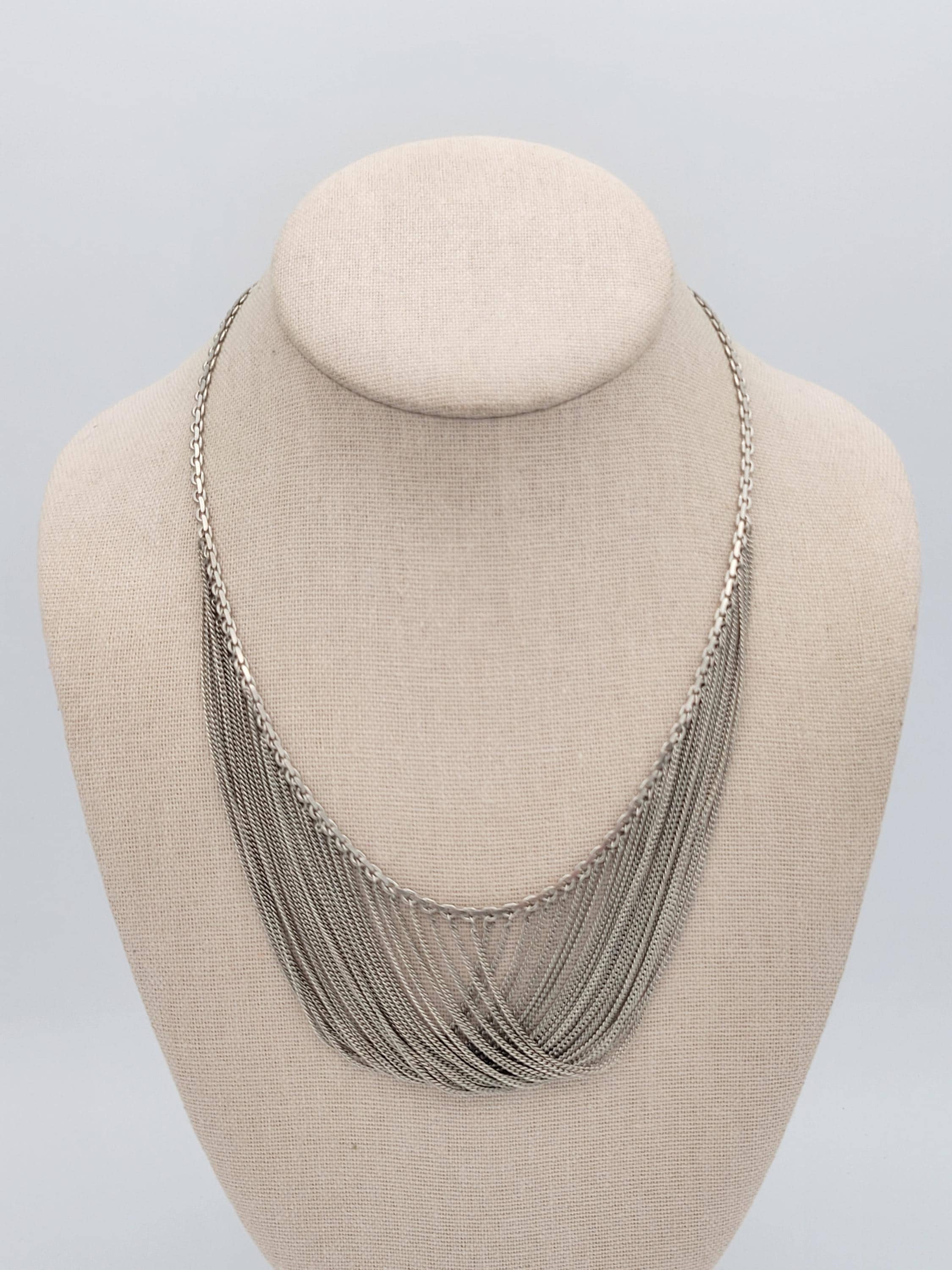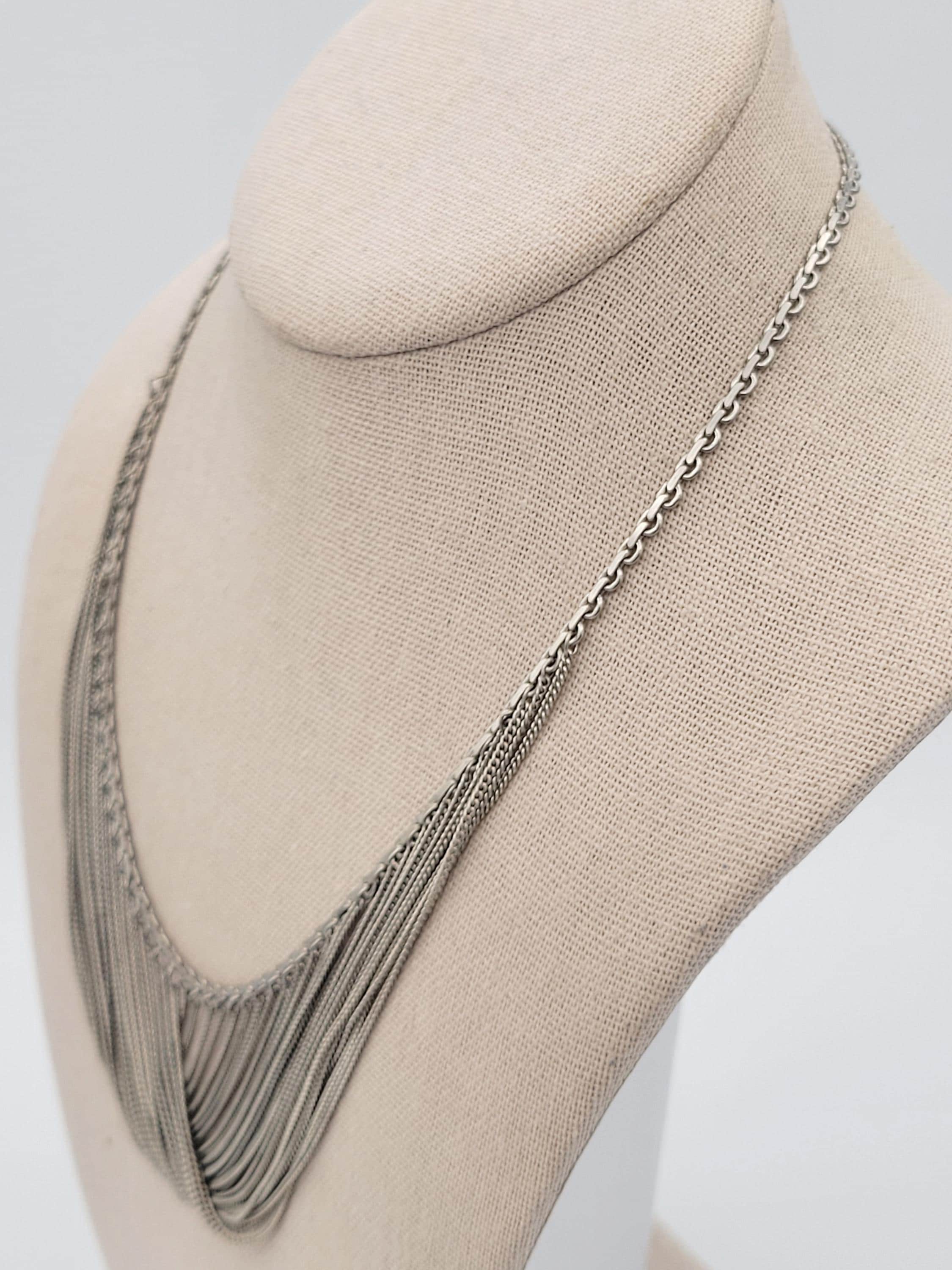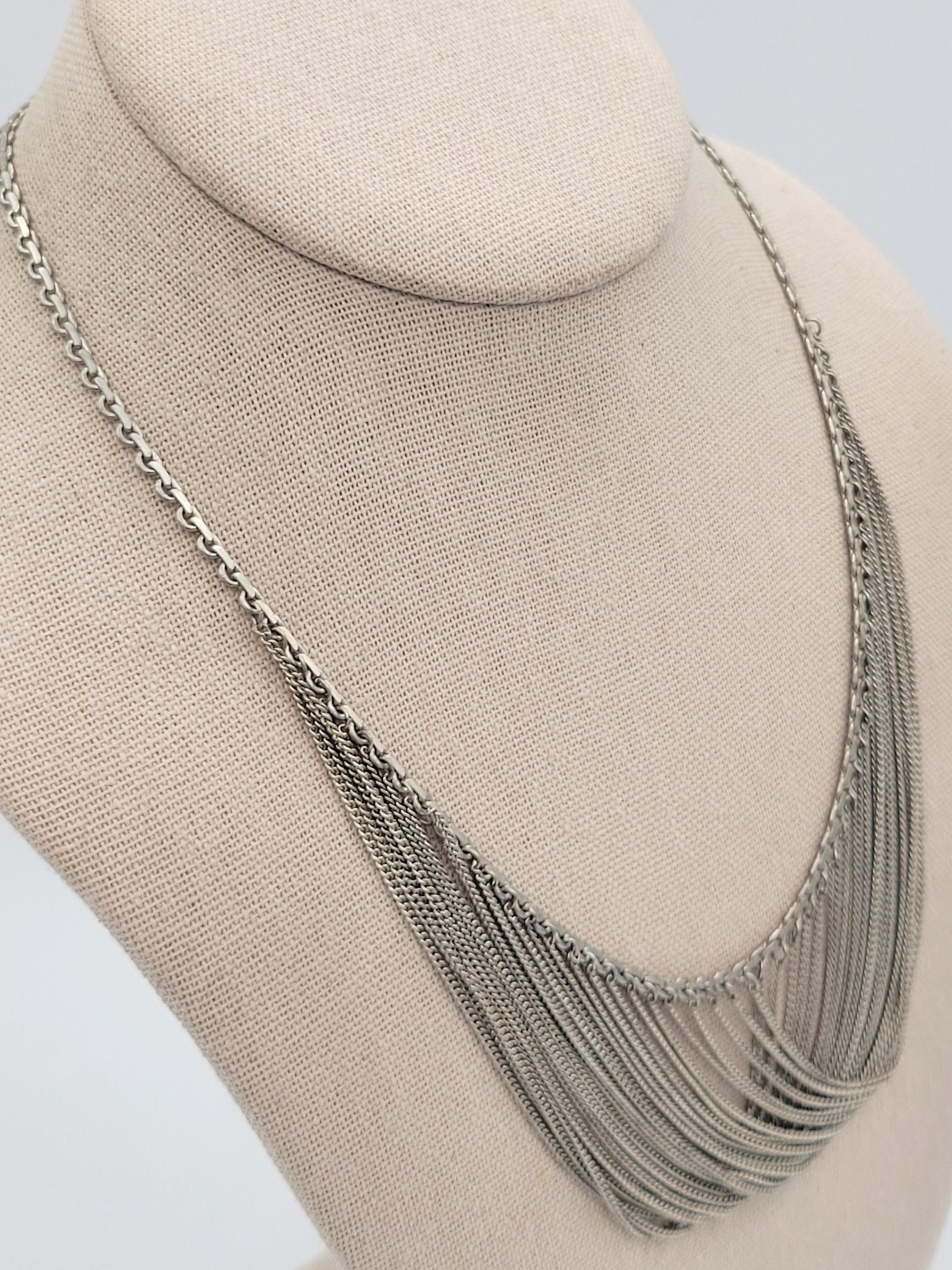 Vintage 1970s .925 Sterling Silver Chain Necklace with Chain Drape Bib