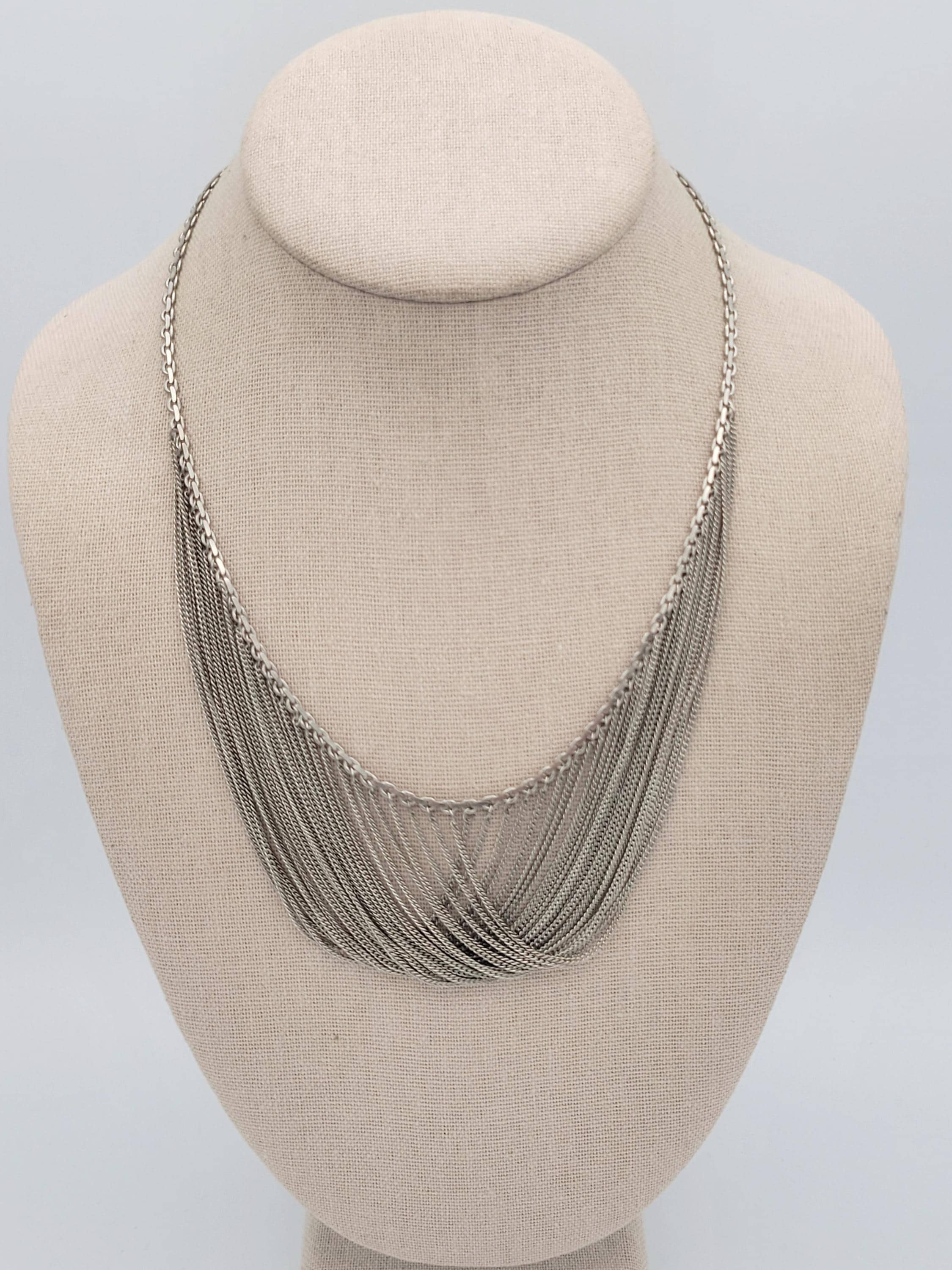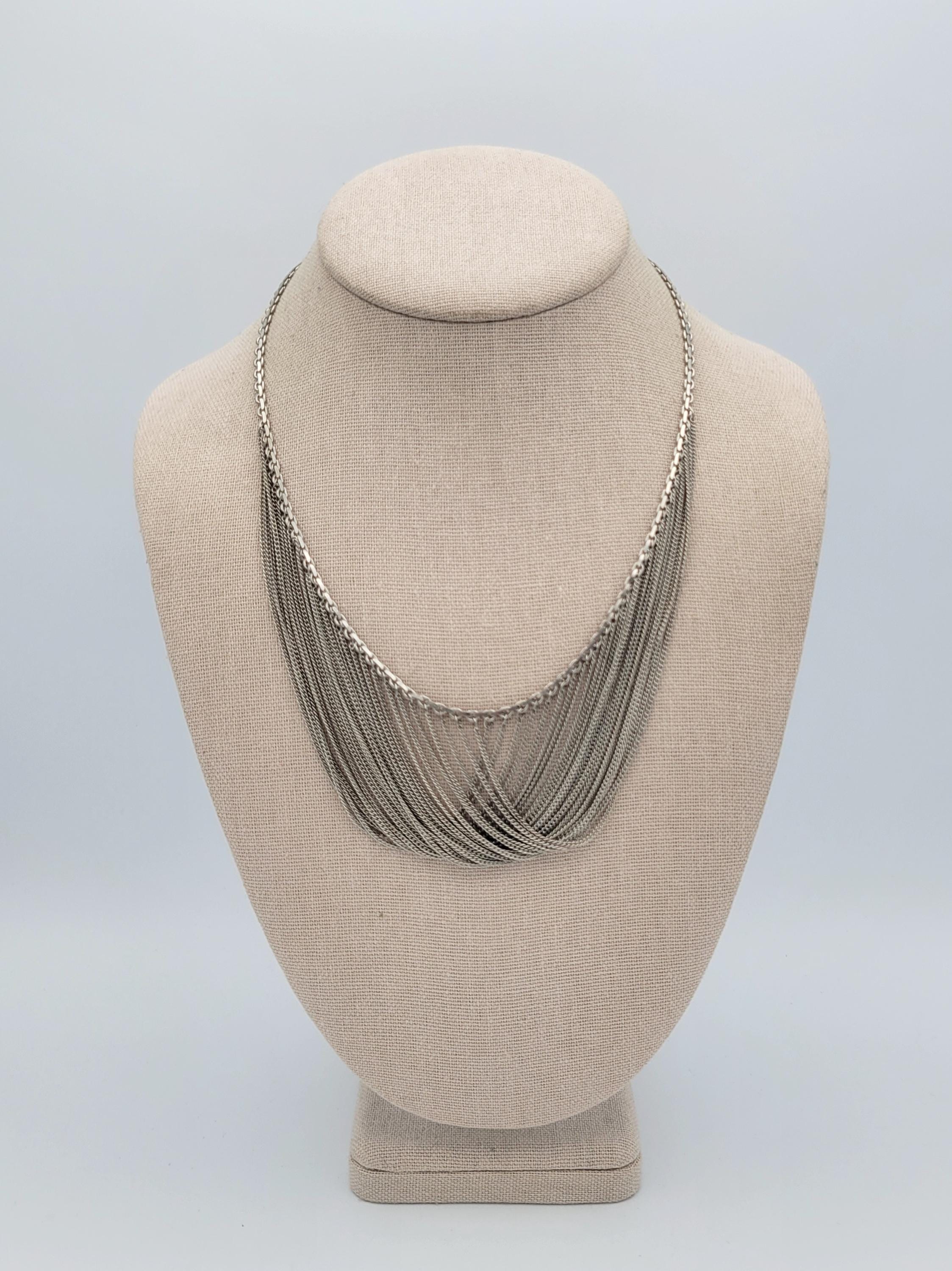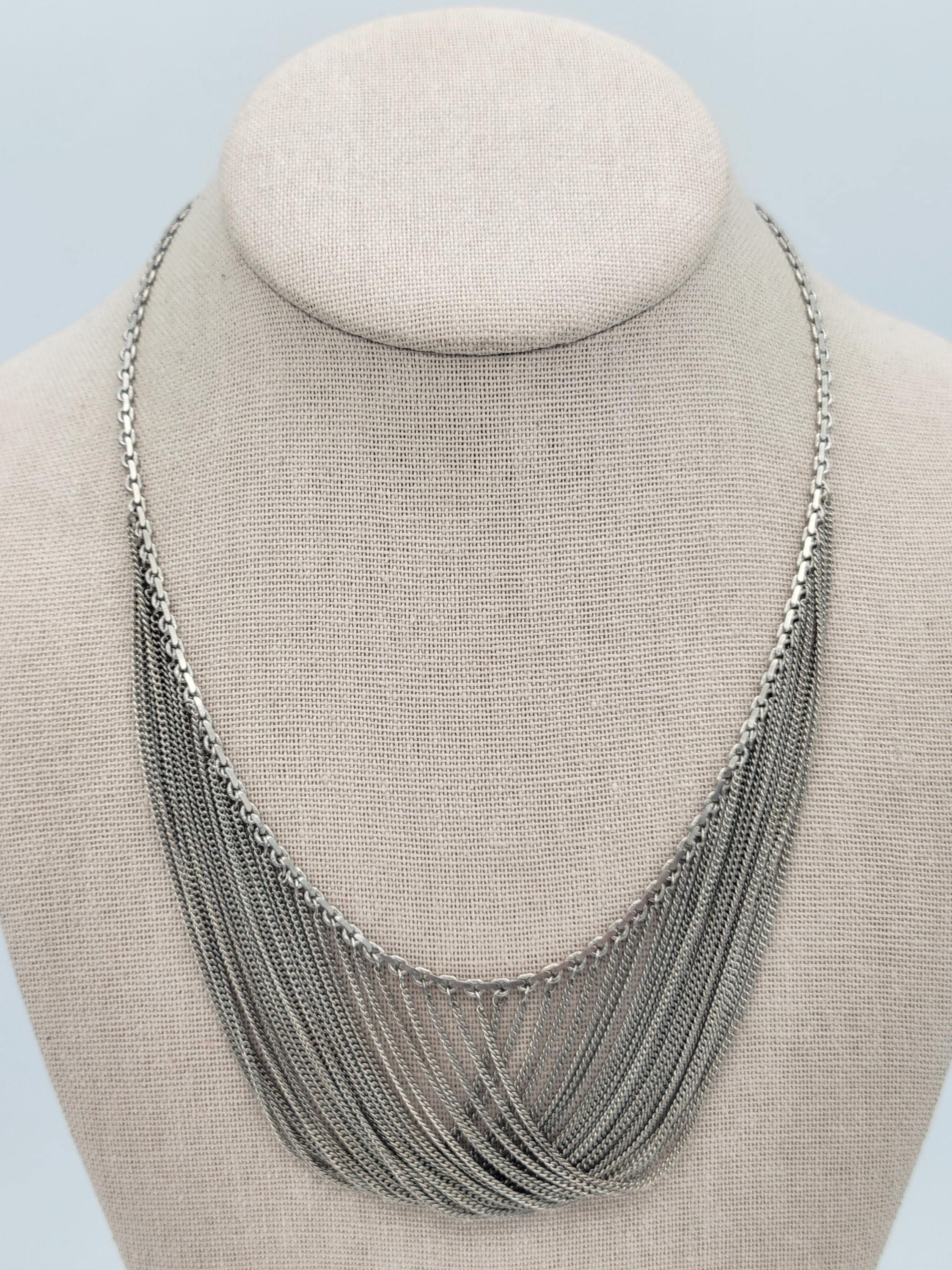 Vintage 1970s .925 Sterling Silver Chain Necklace with Chain Drape Bib