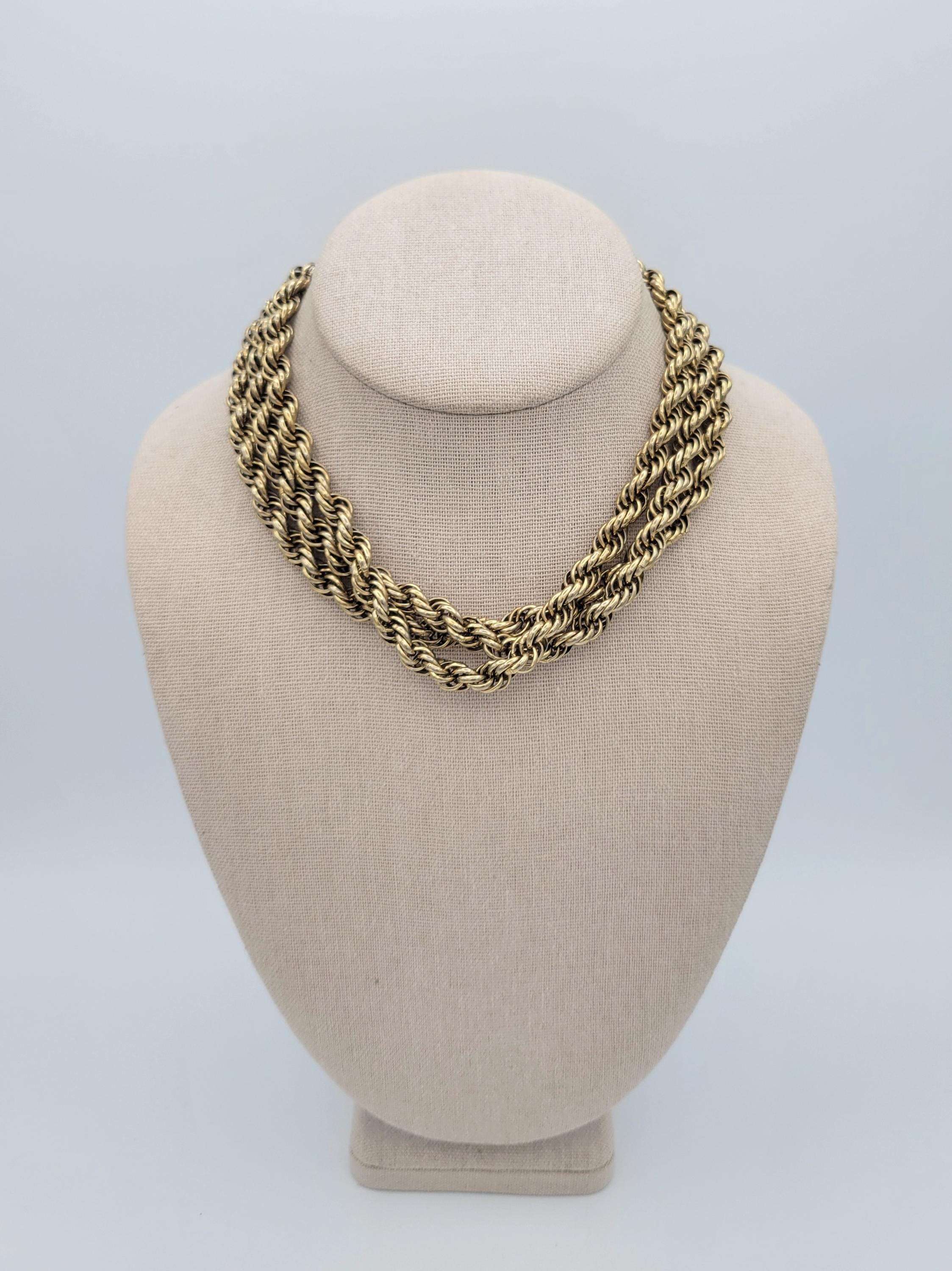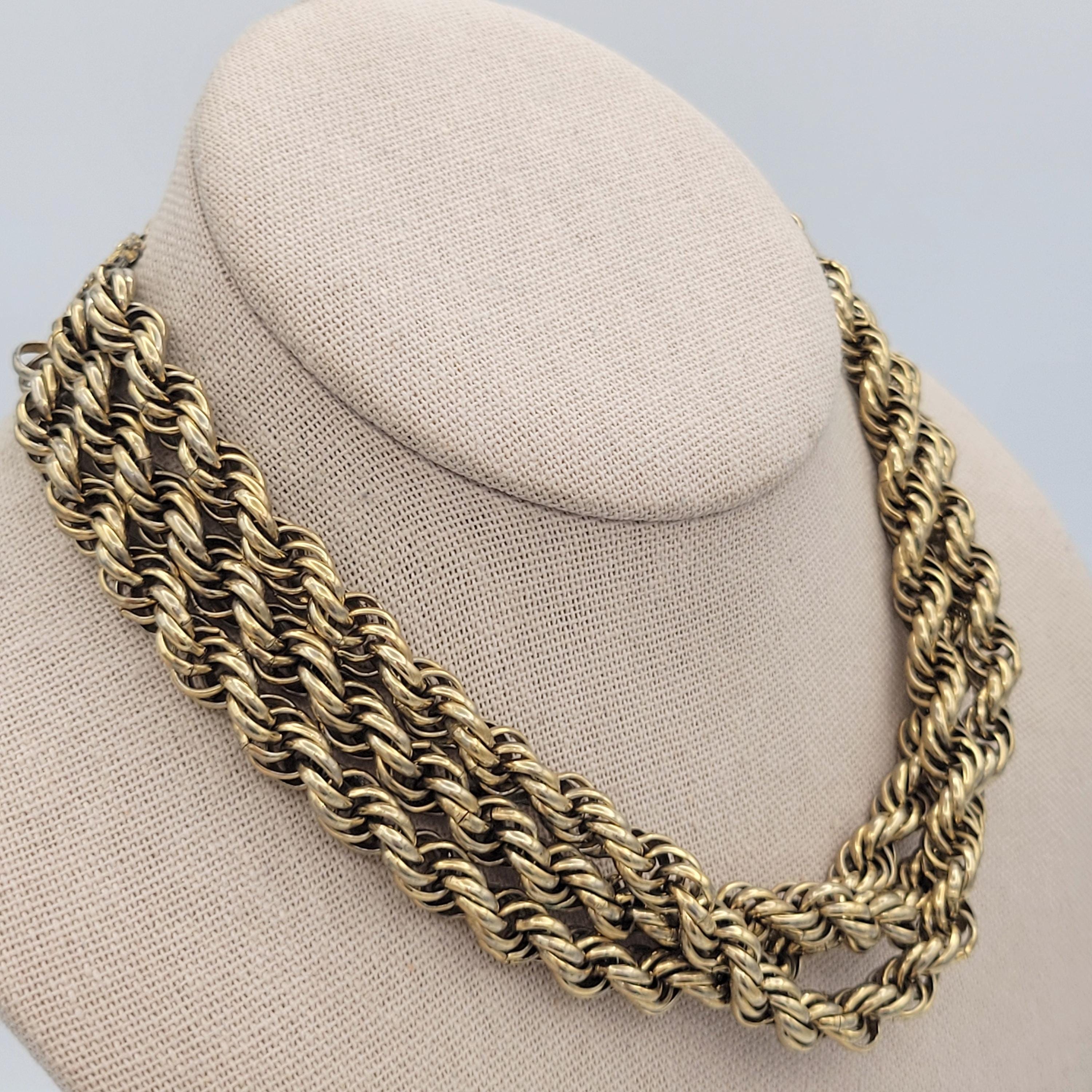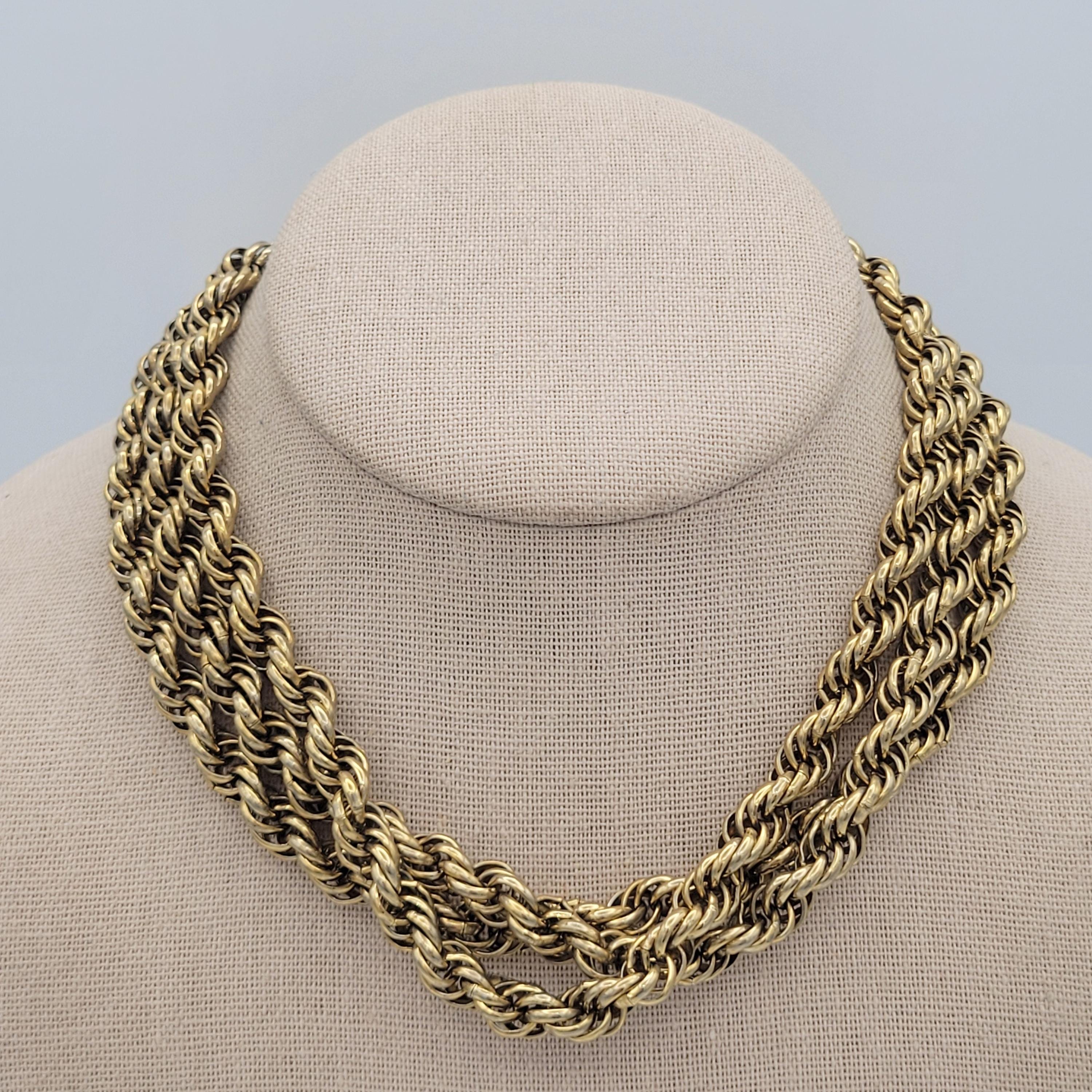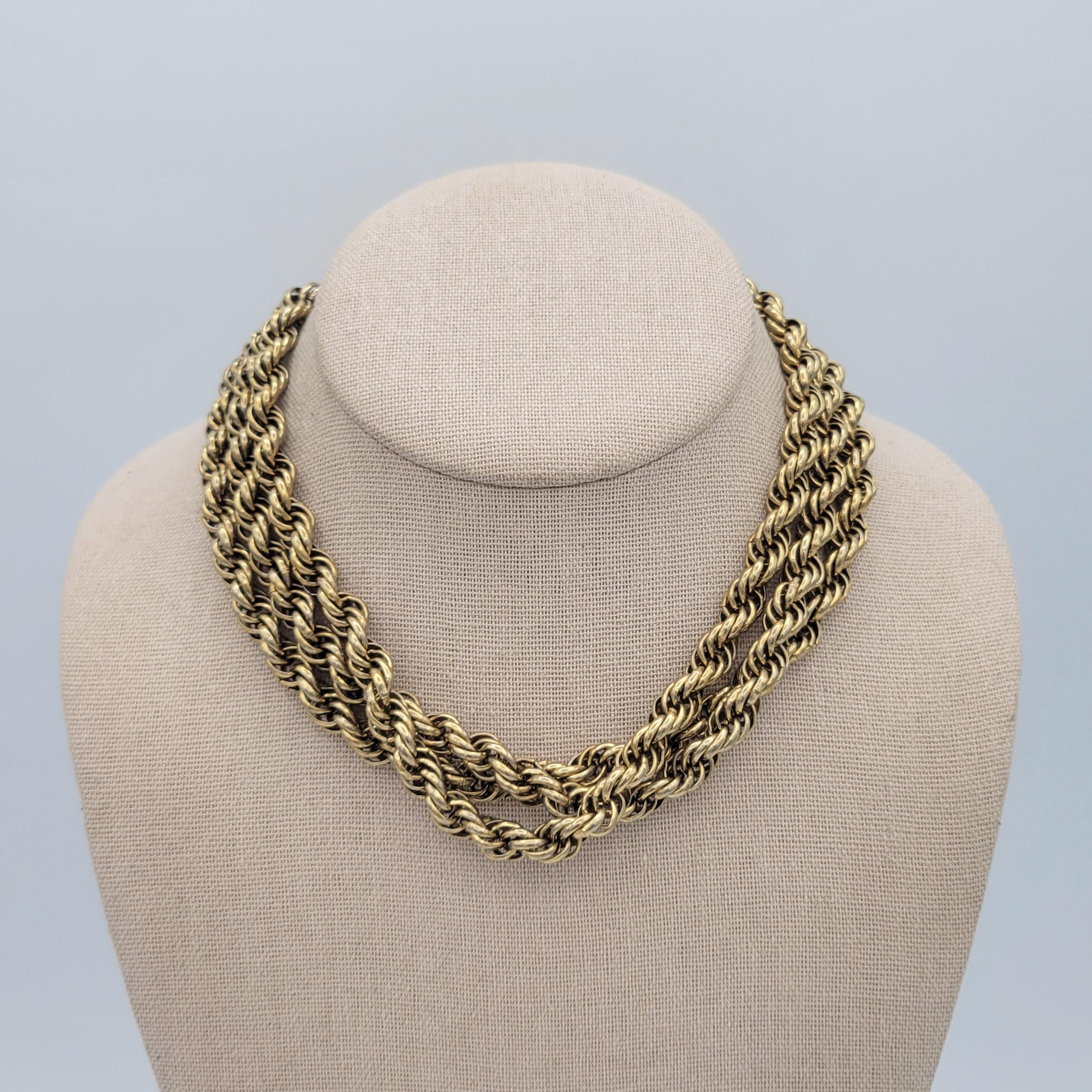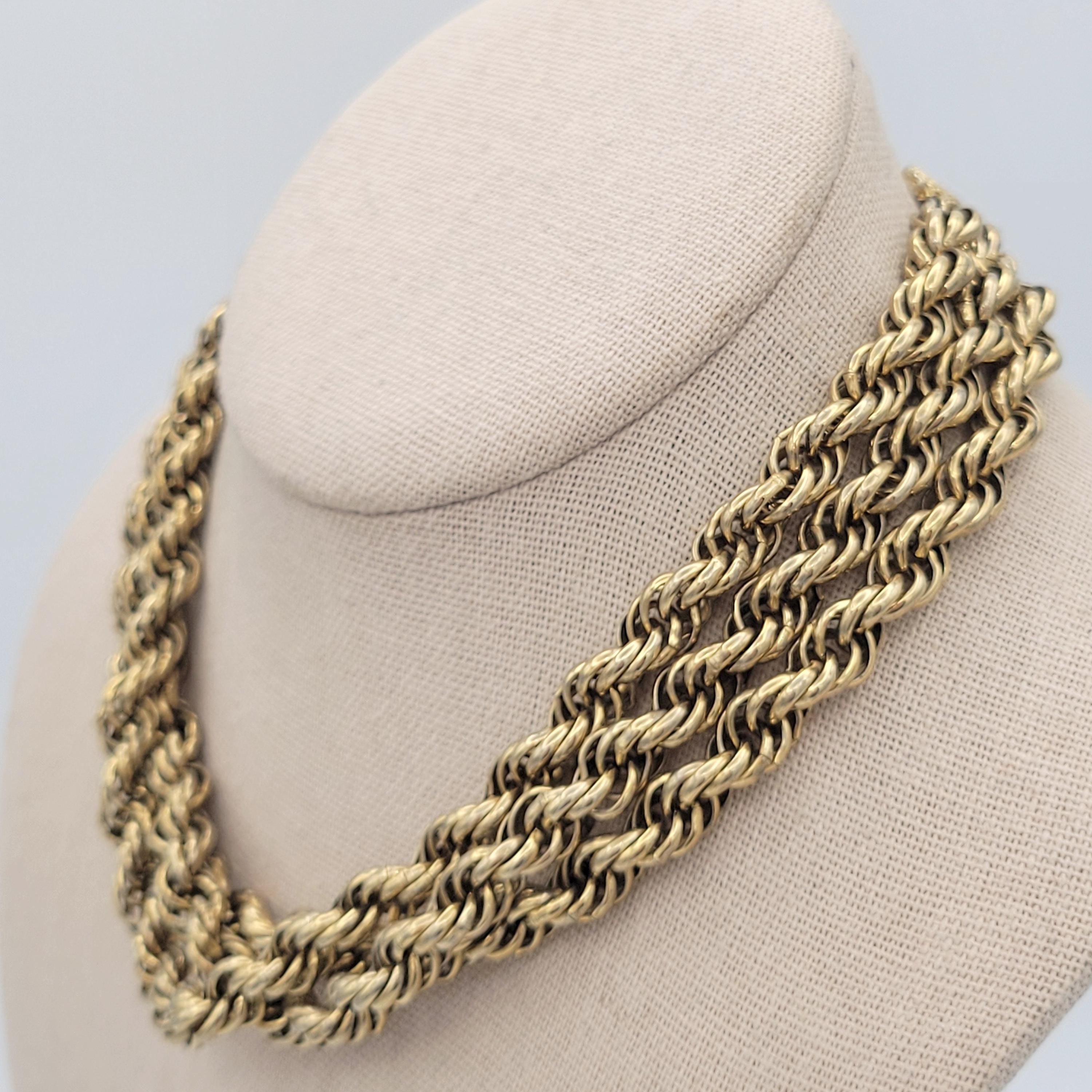 Vintage 1960s Capri Gold Tone 3 Strand Chunky Rope Chain Necklace with Hook Clasp