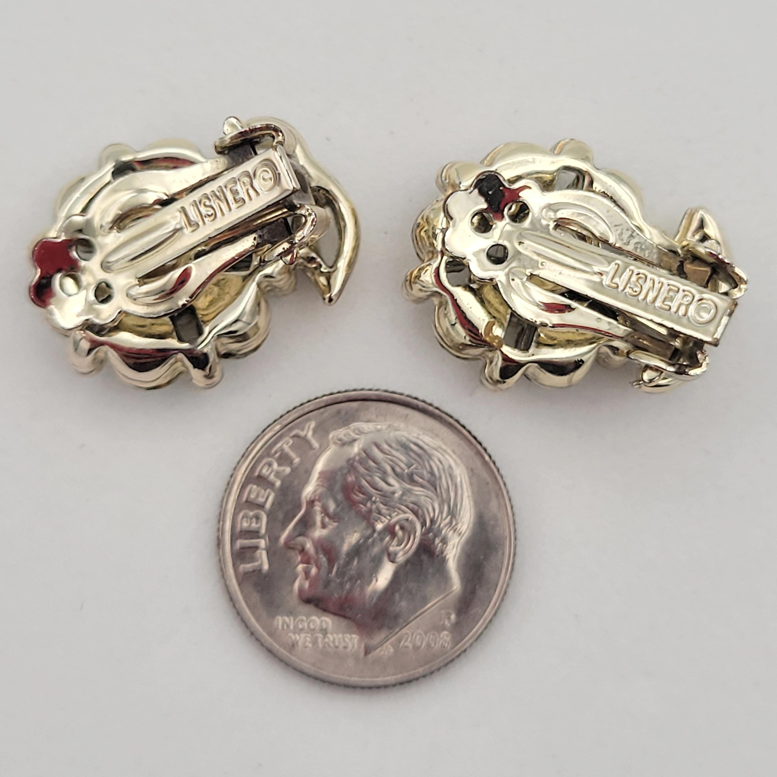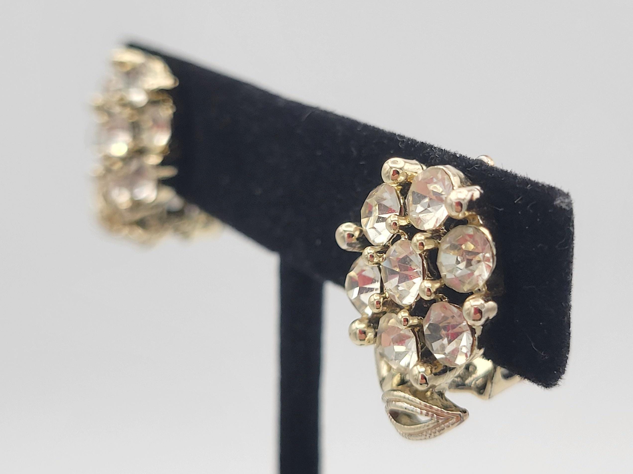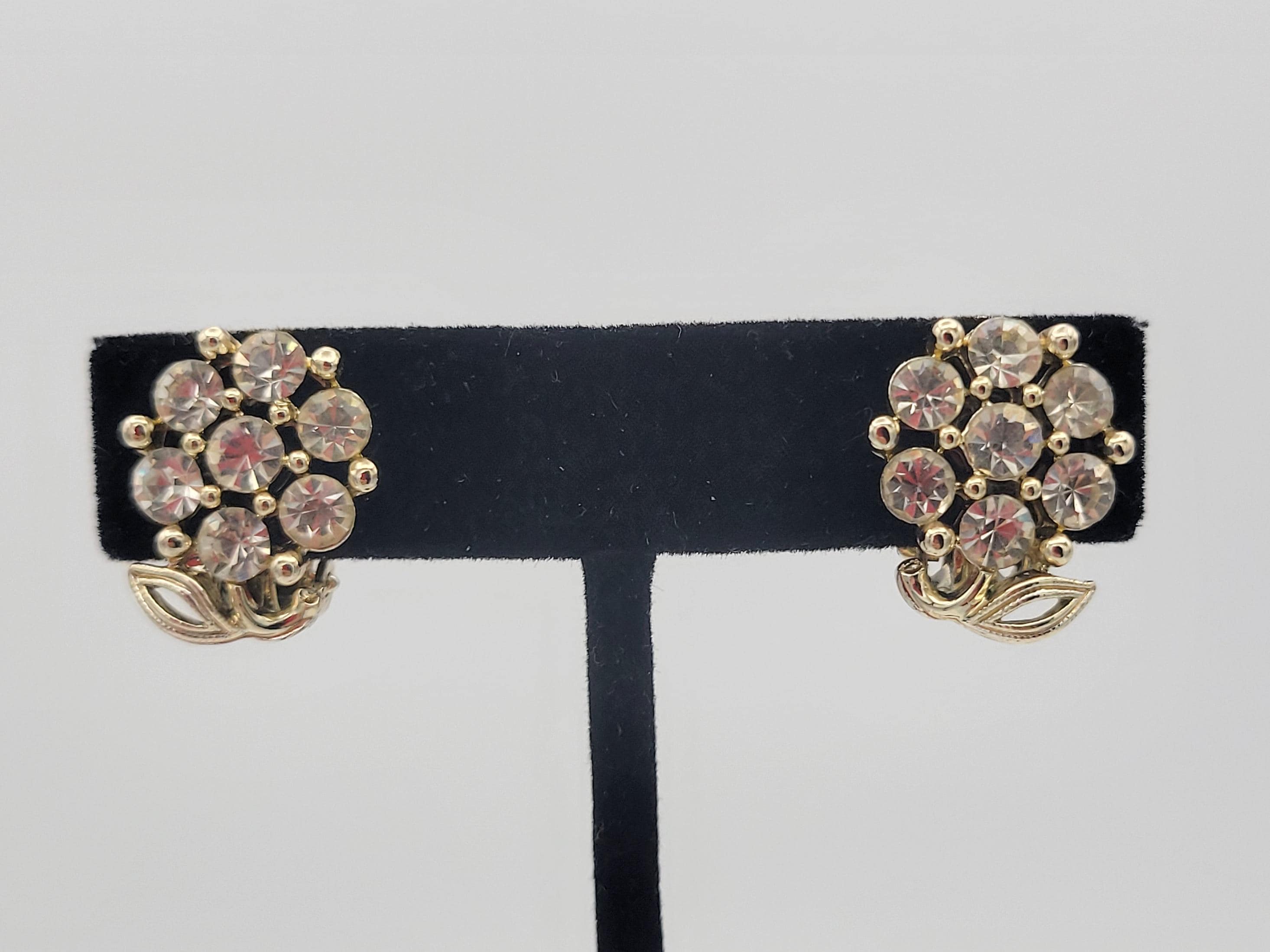 Vintage 1960s Lisner Silver Tone Rhinestone Encrusted Floral Bouquet Button Clip On Earrings