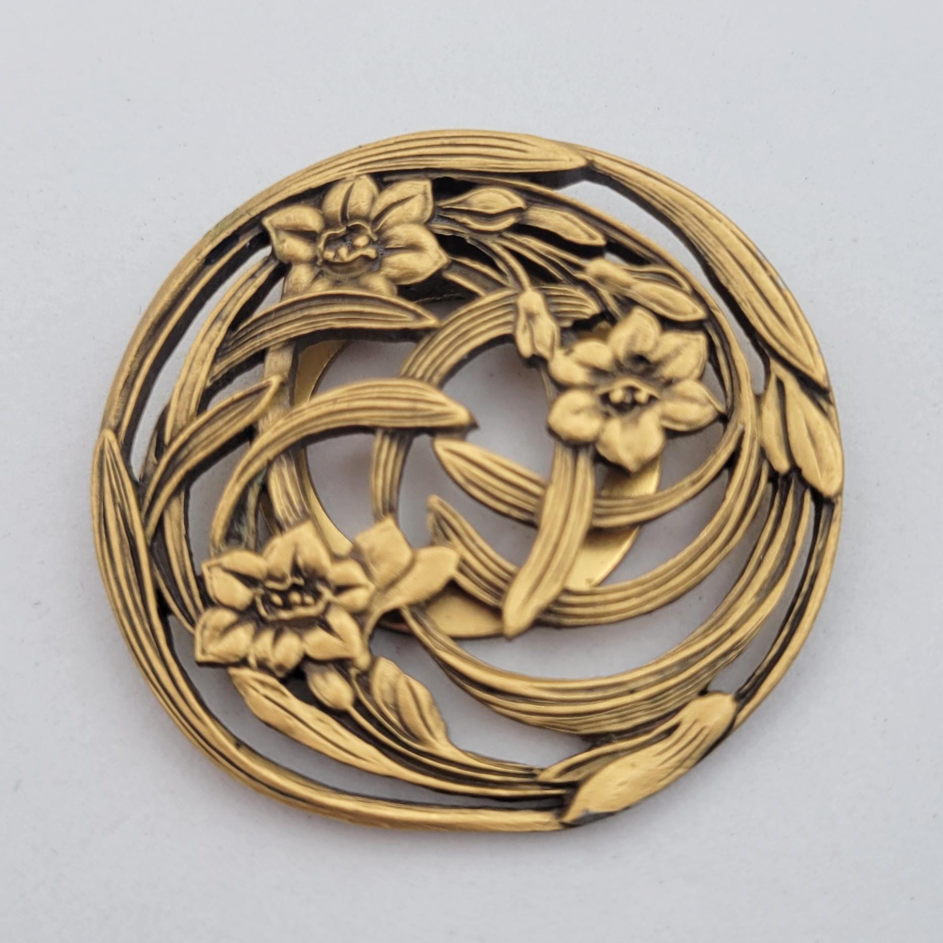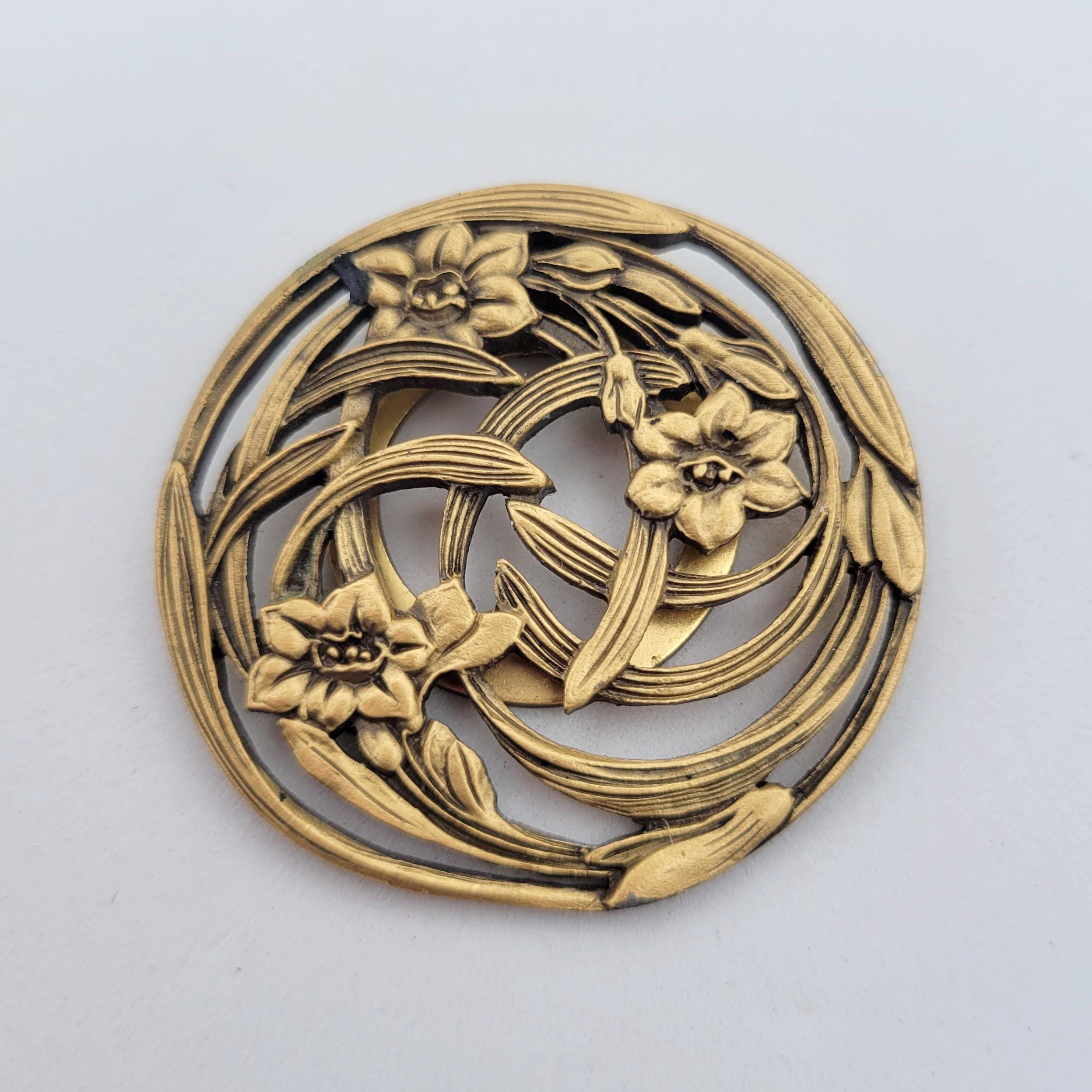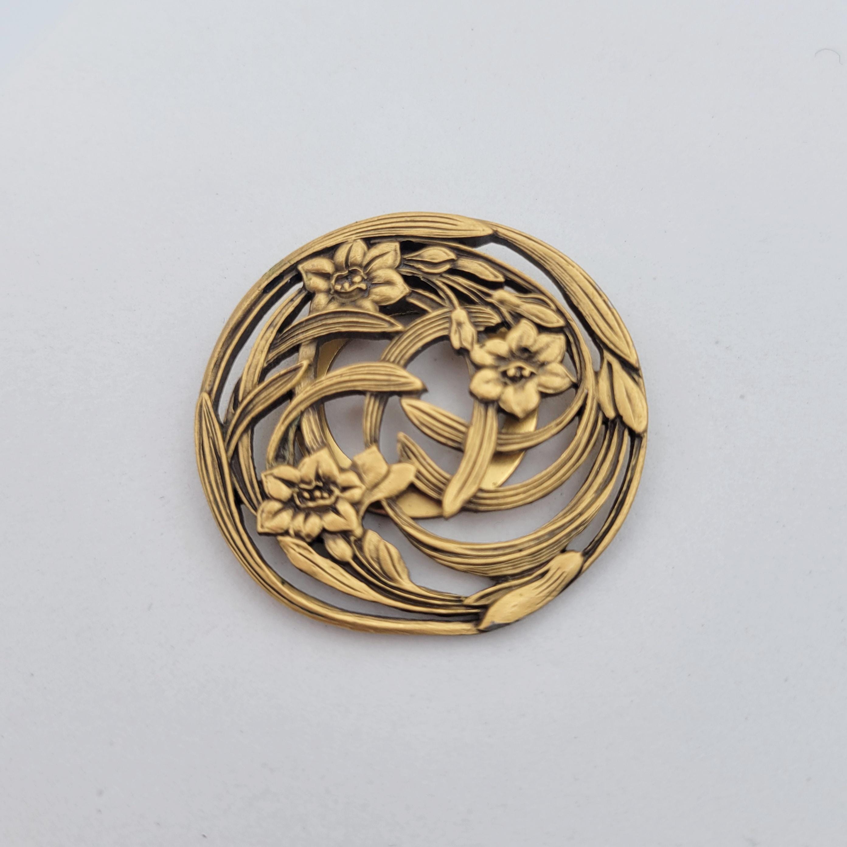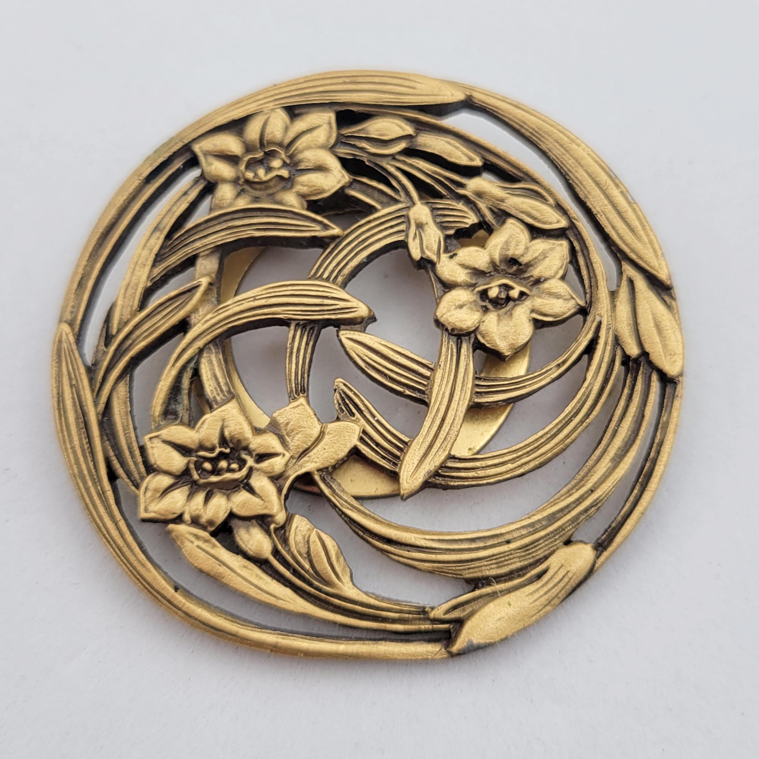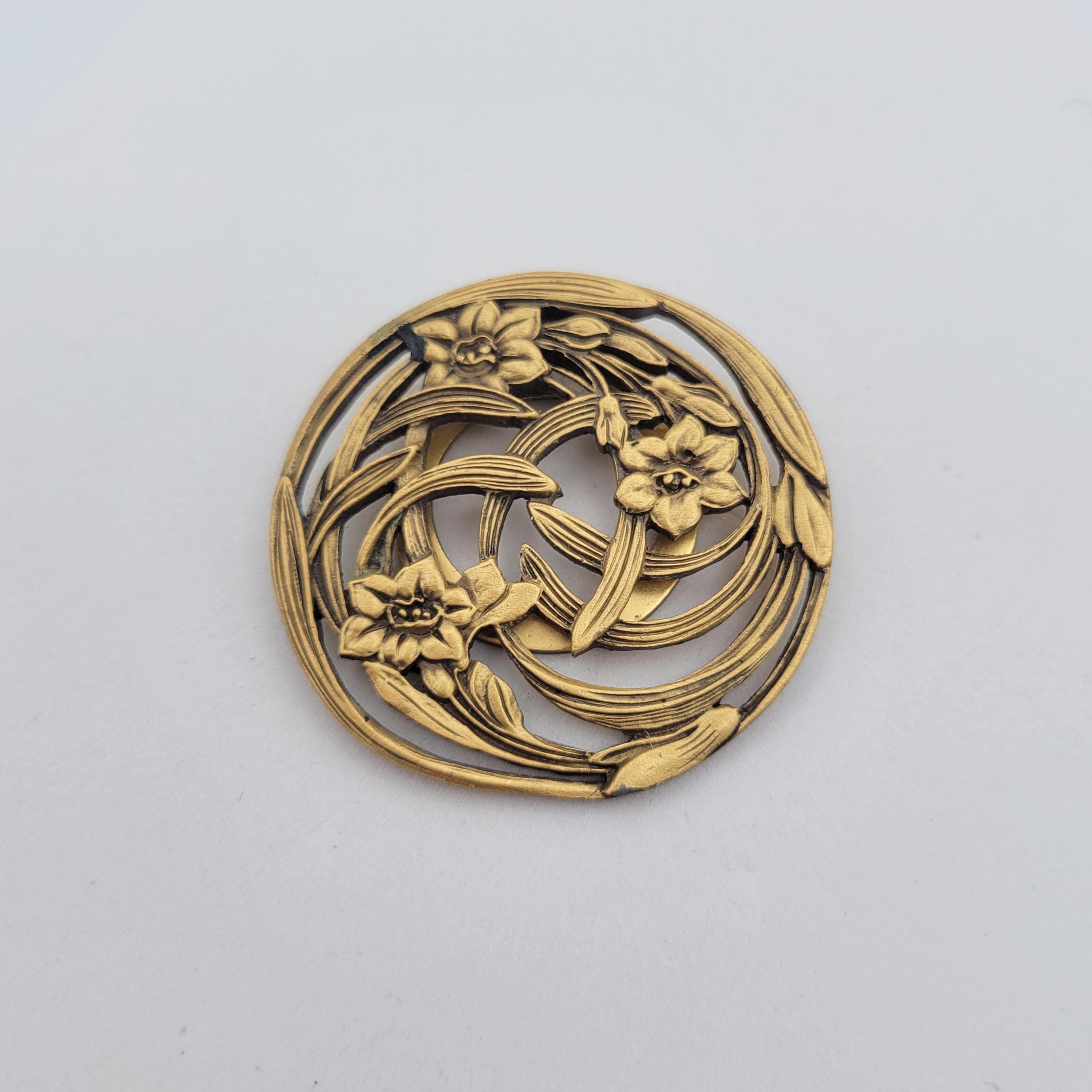 Vintage Museum of Fine Arts Boston Gold Tone Openwork Circular Floral Motif Scarf Clip