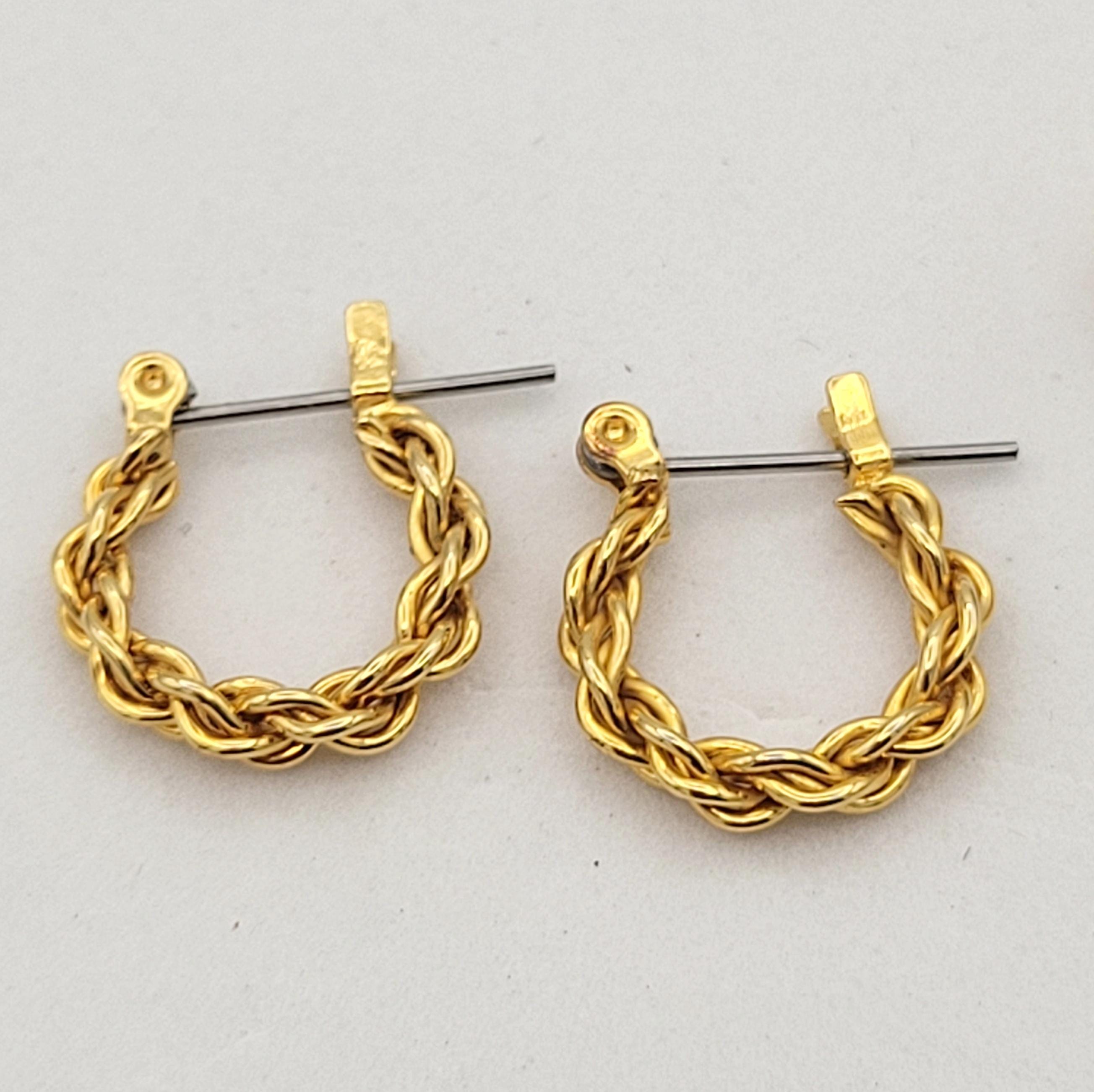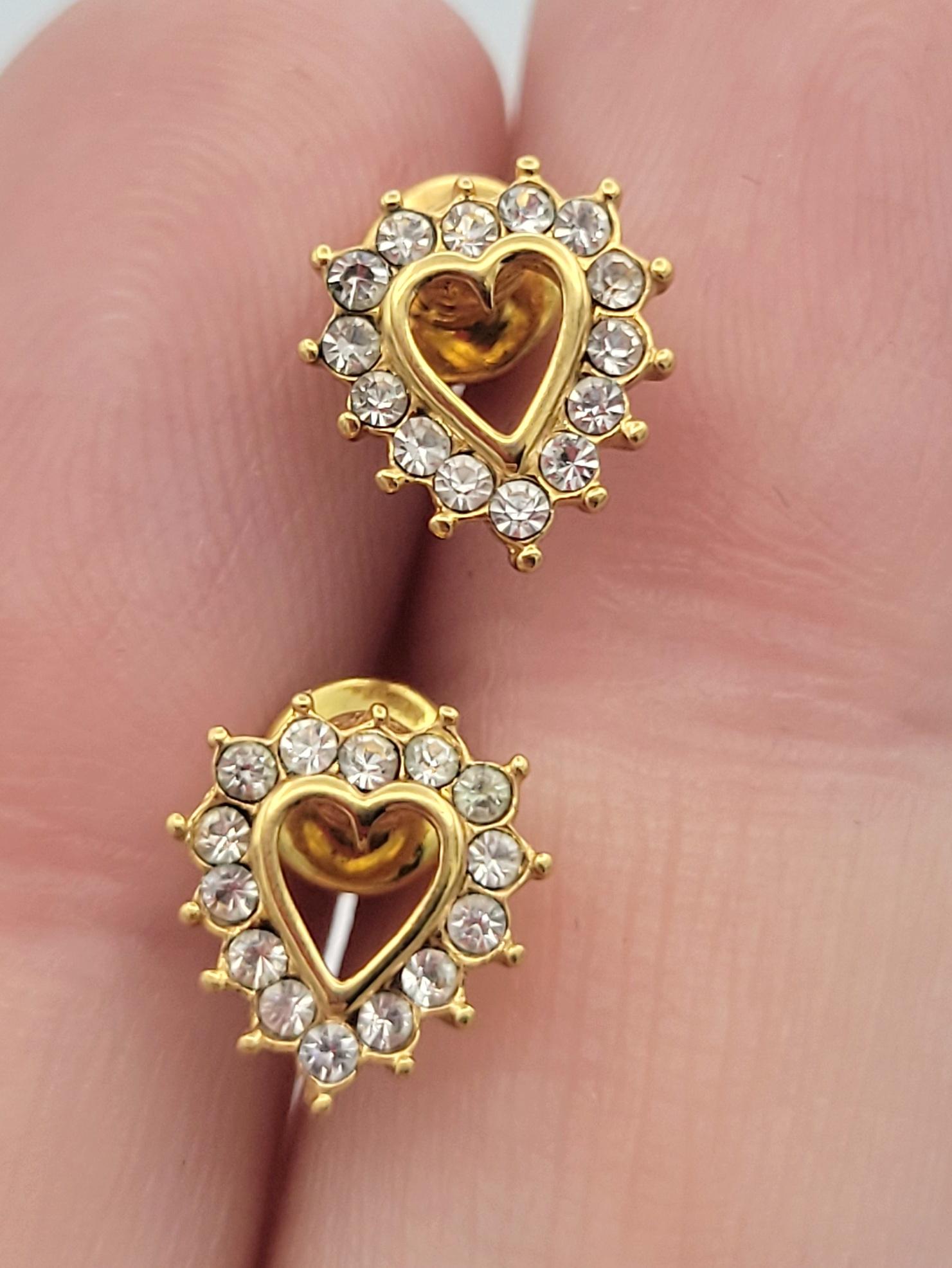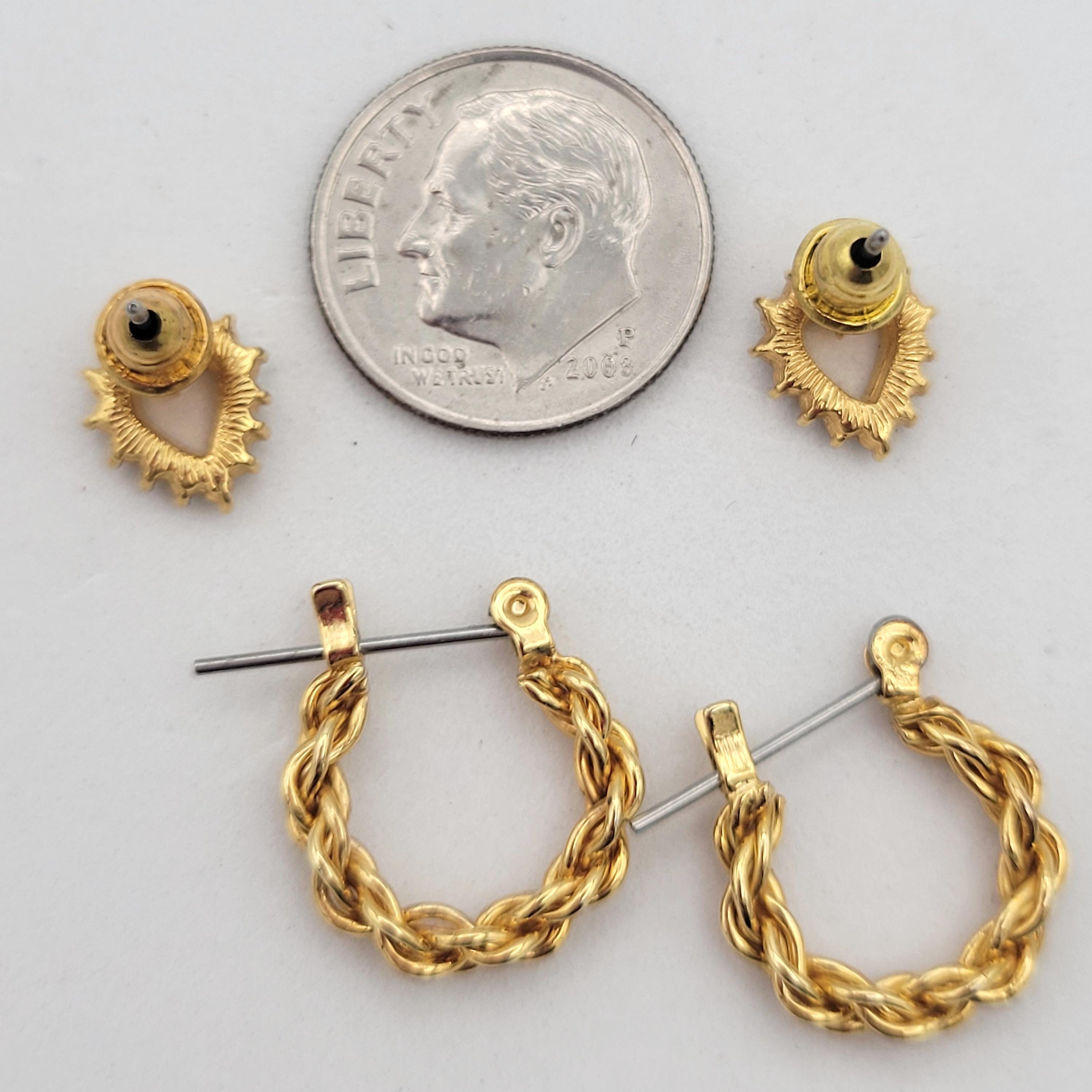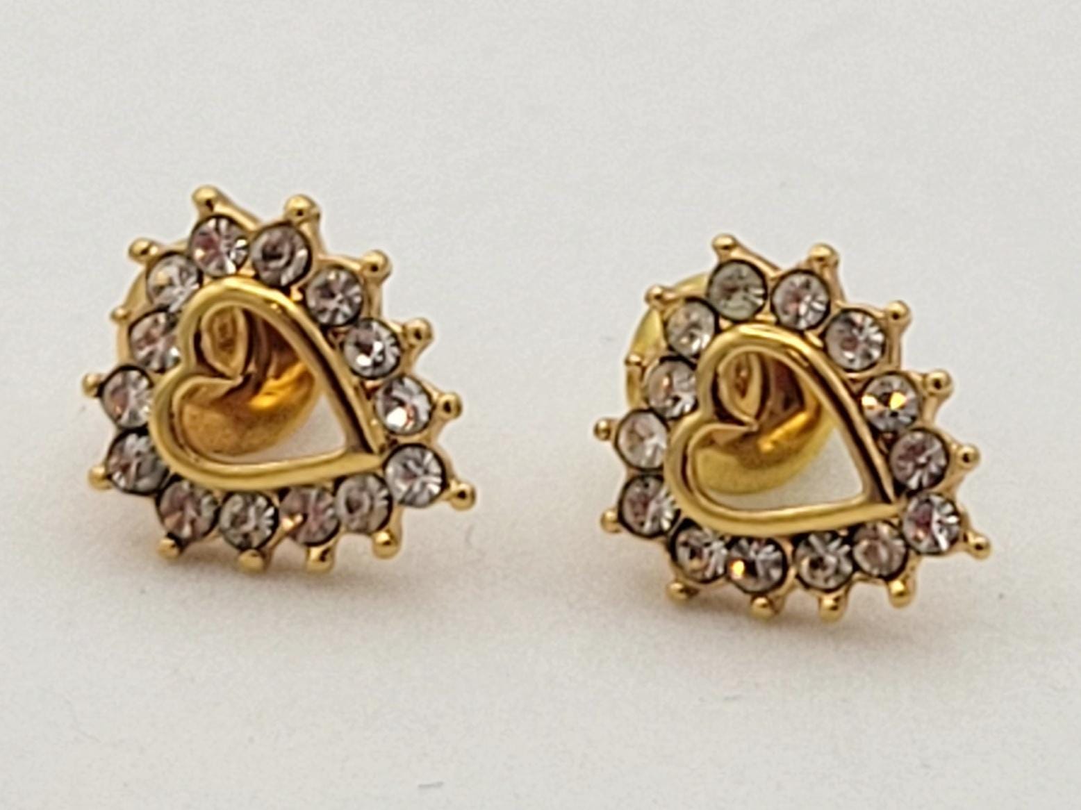 This listing includes 2 pairs of gold-tone earrings to spice up your jewelry wardrobe. The heart-shaped earrings have an openwork center & are completely encrusted in tiny faceted crystals. The latch-back hoops are made from gold-tone rope chain. Both pairs of earrings are in excellent, nearly new condition.
