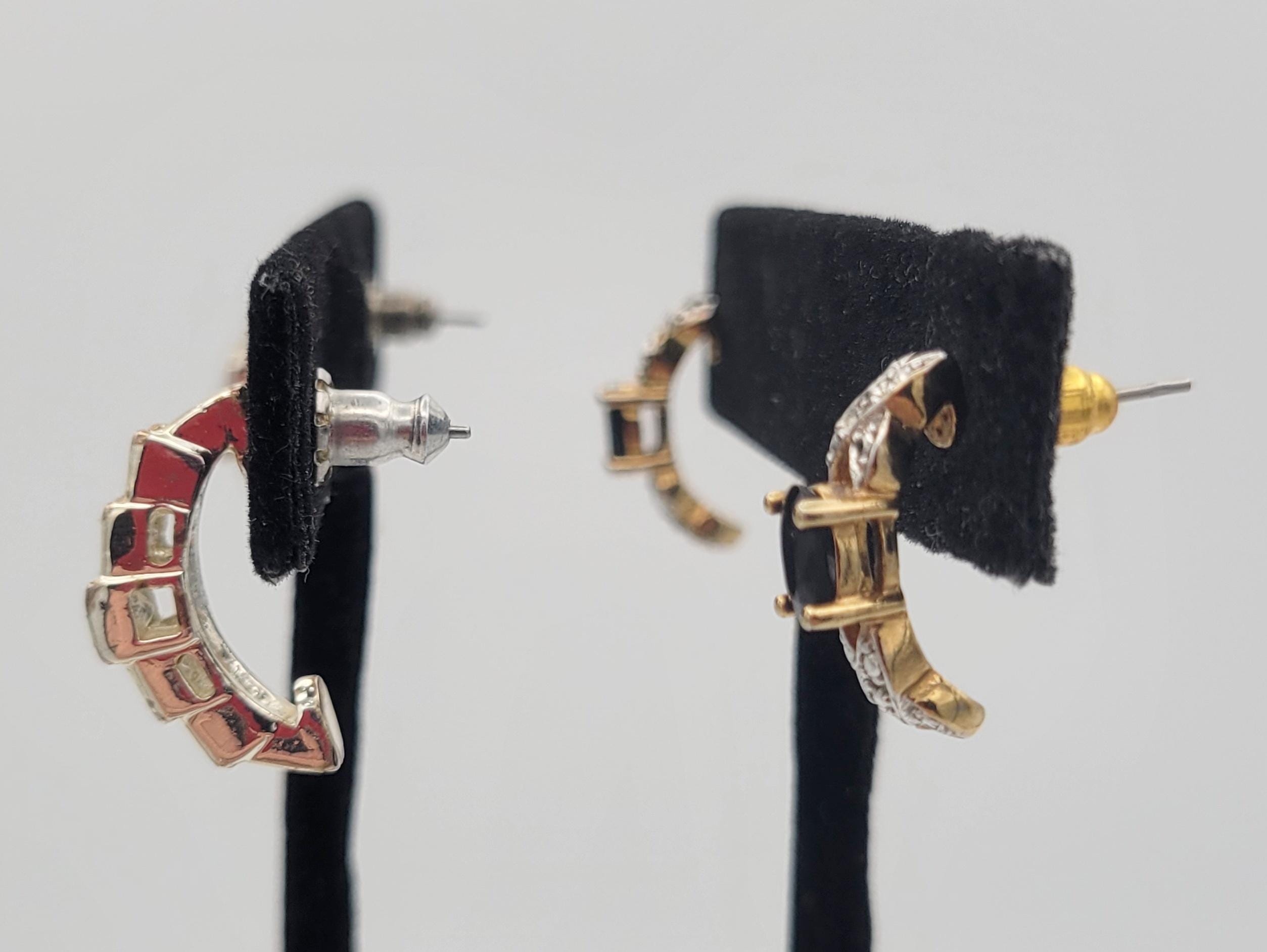 Two Pairs of Vintage Curved Semi Circle Rhinestone Encrusted Drop Earrings