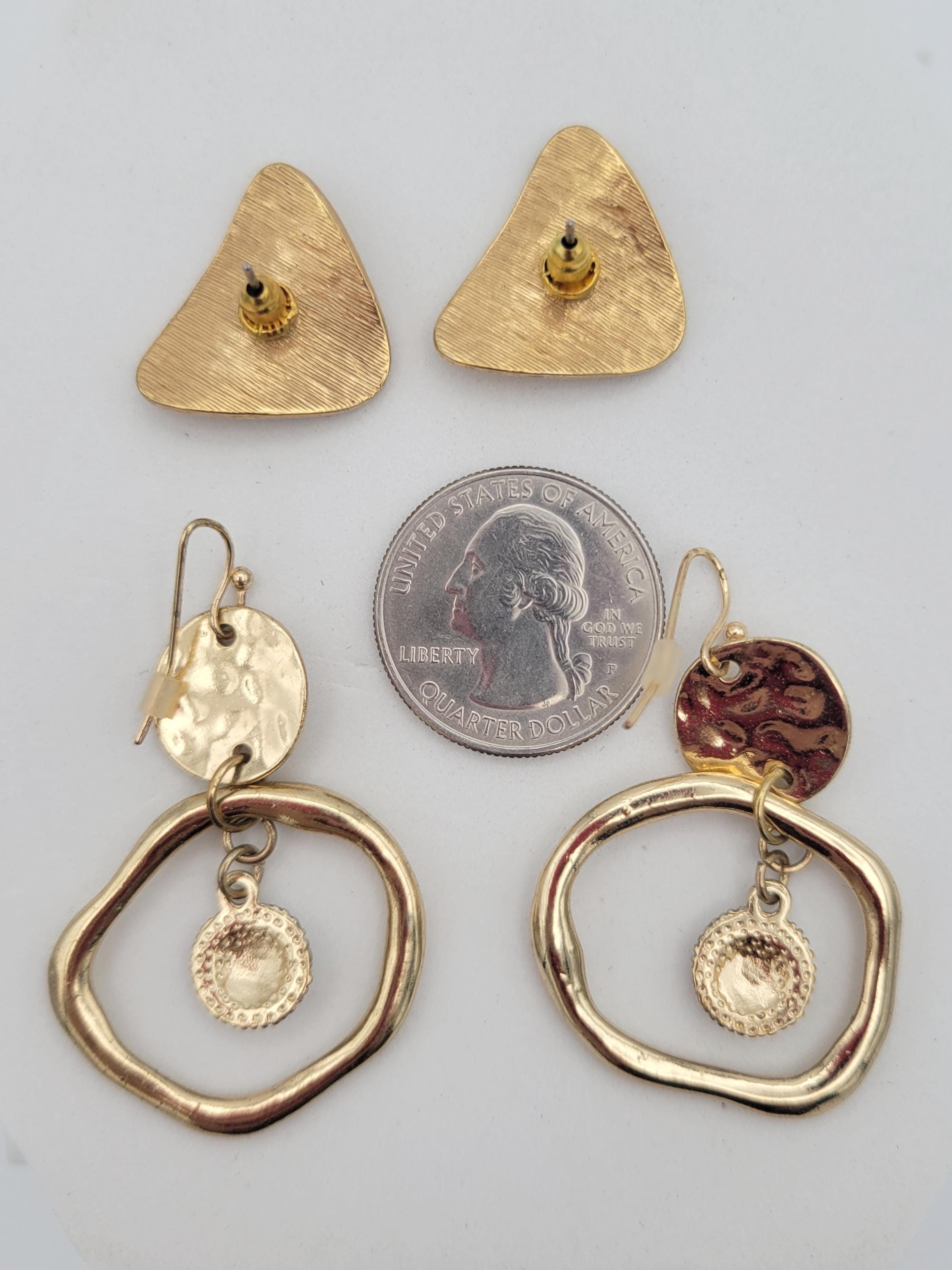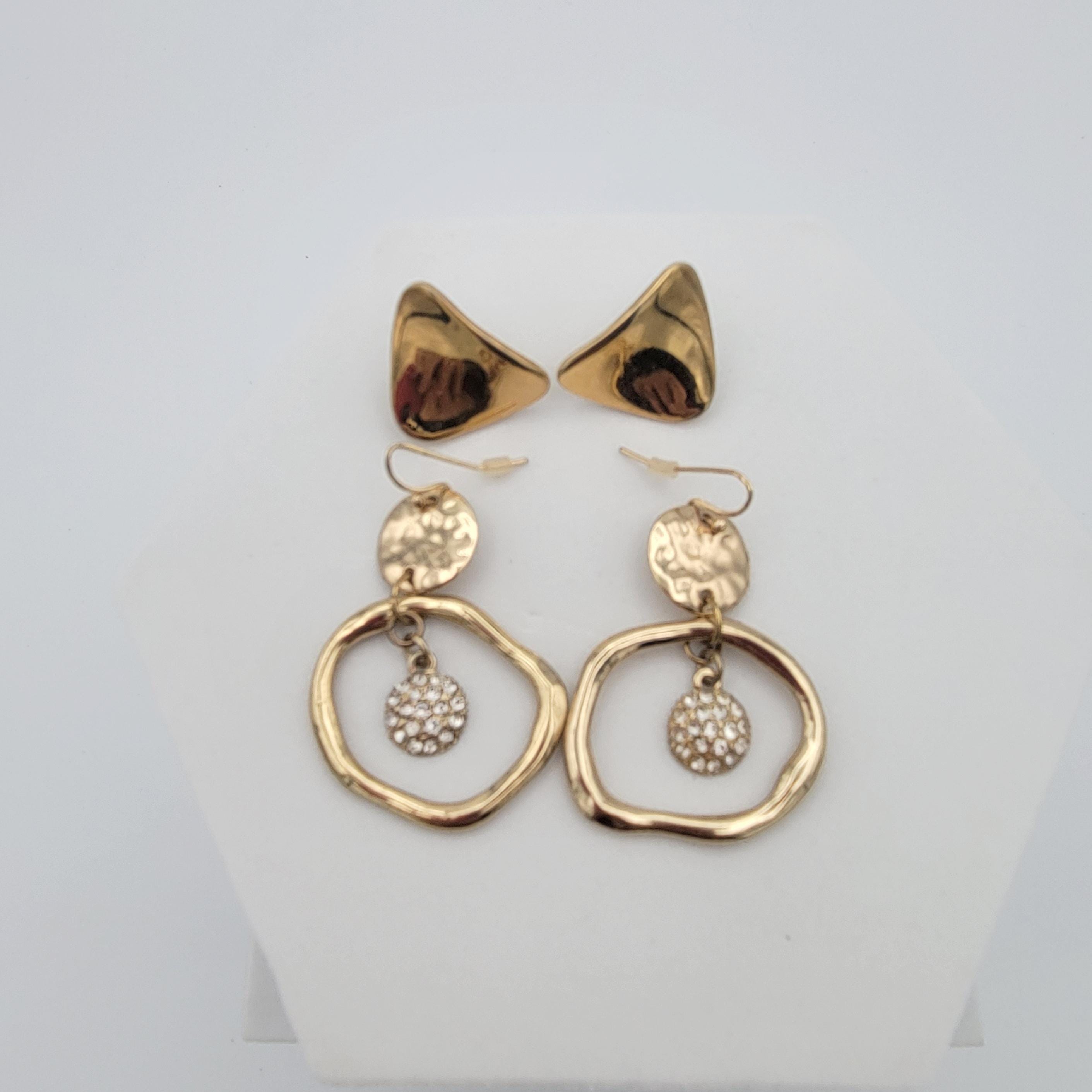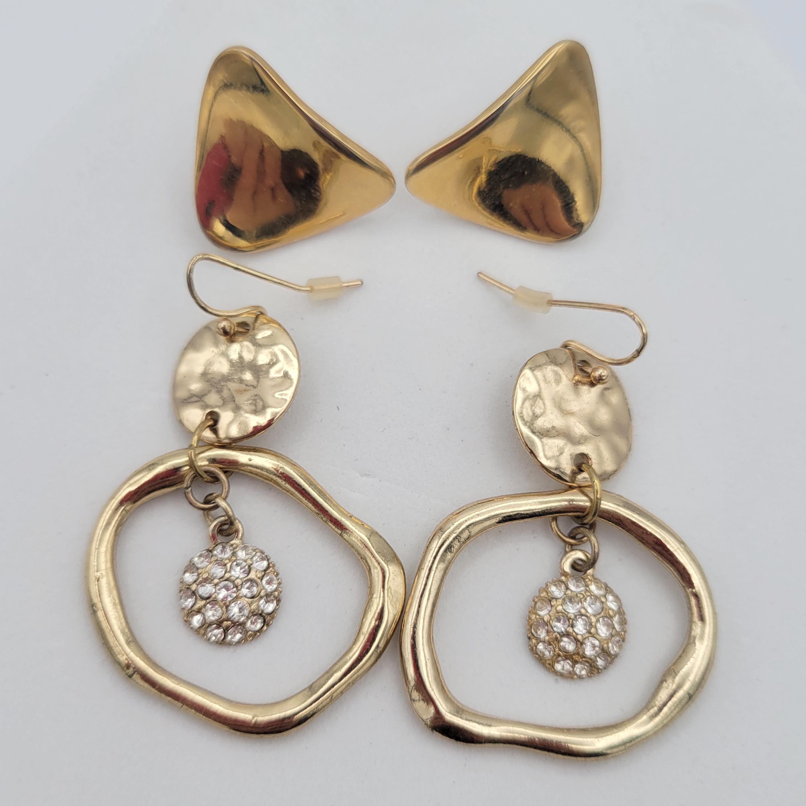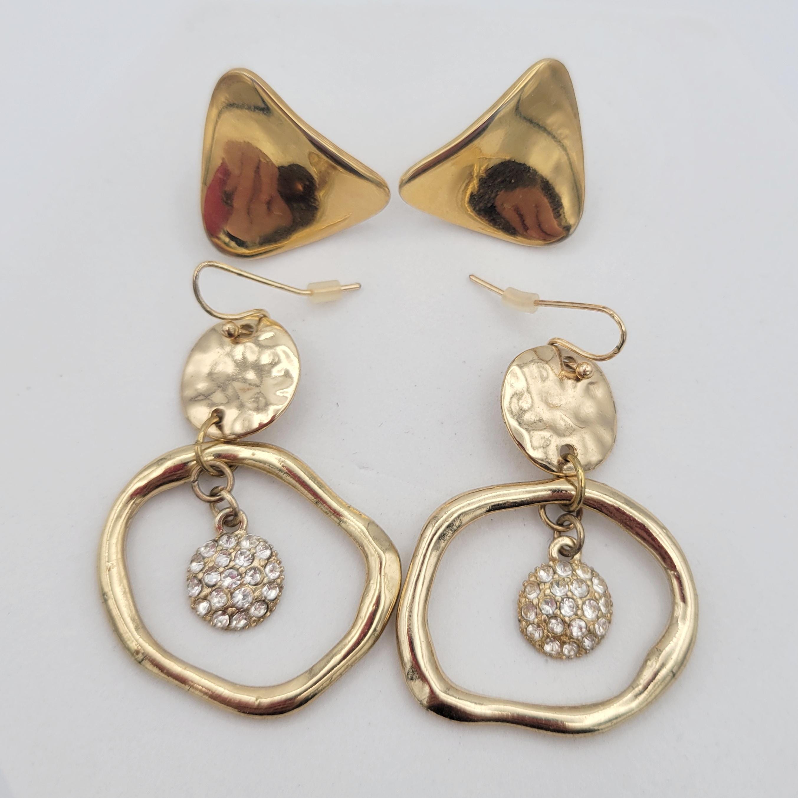 Two Pairs of Vintage Gold Tone Geometric Earrings Dangles & Studs