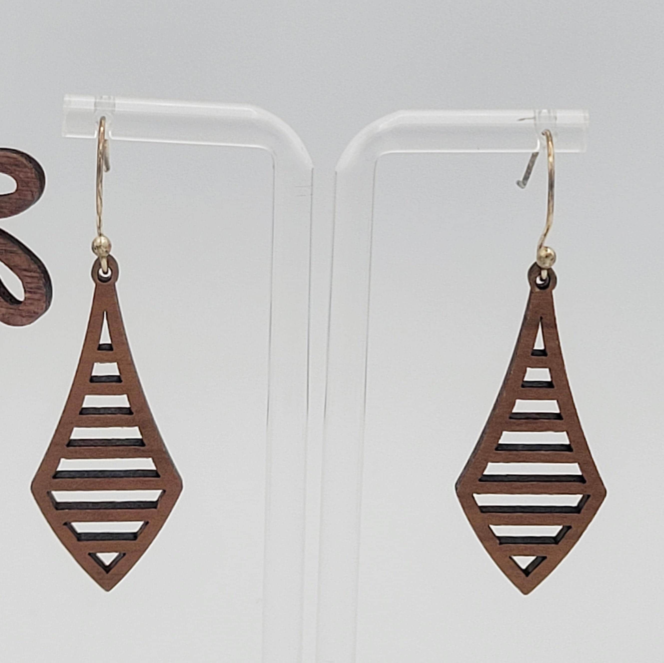 These boho earrings are fun & lightweight! Each pair is made from lightweight wood that has an openwork design. The floral earrings have silver-tone accents & ear wires, while the teardrop earrings have gold-tone ear wires. Both pairs are in excellent vintage condition with very little wear.