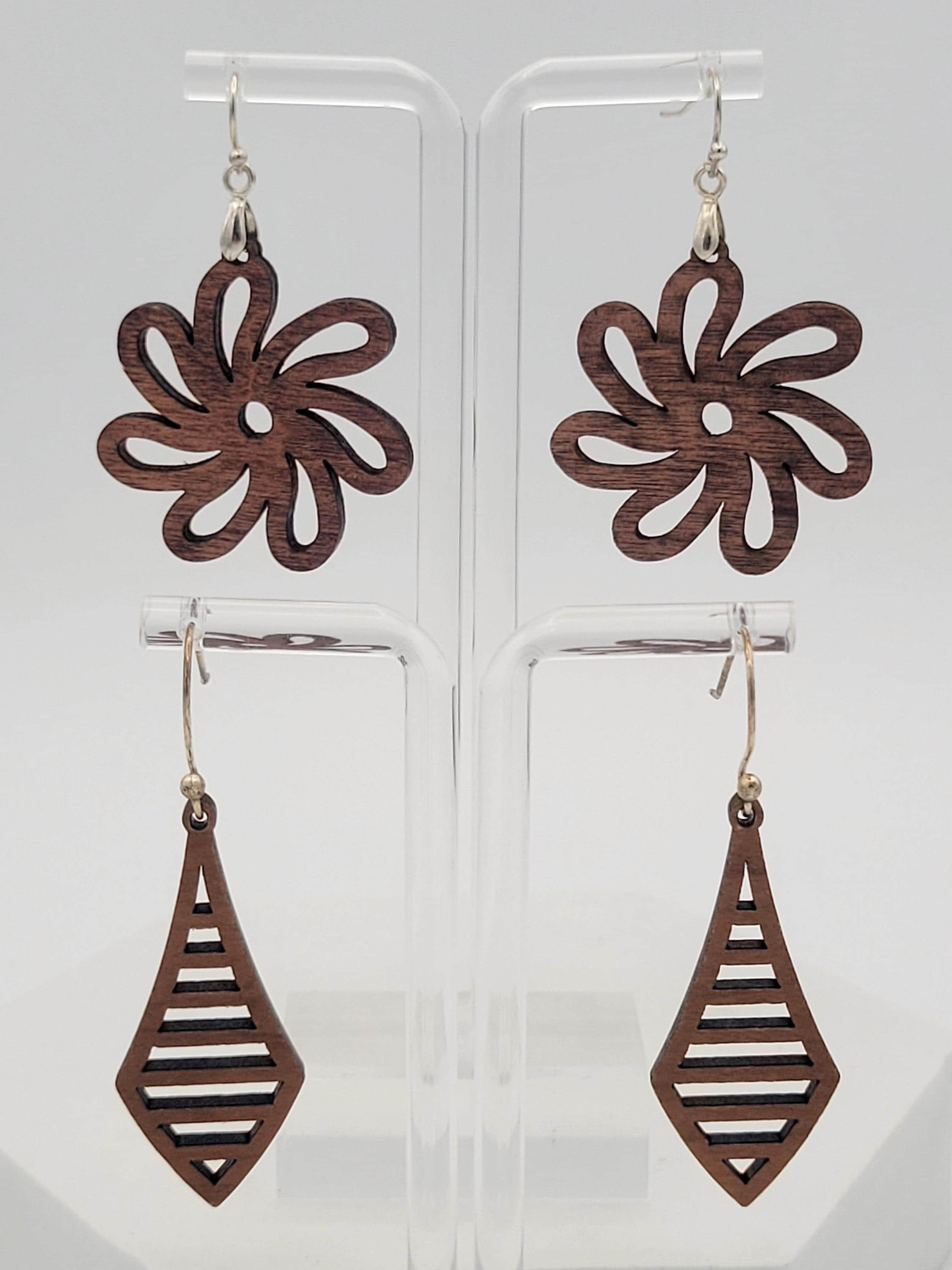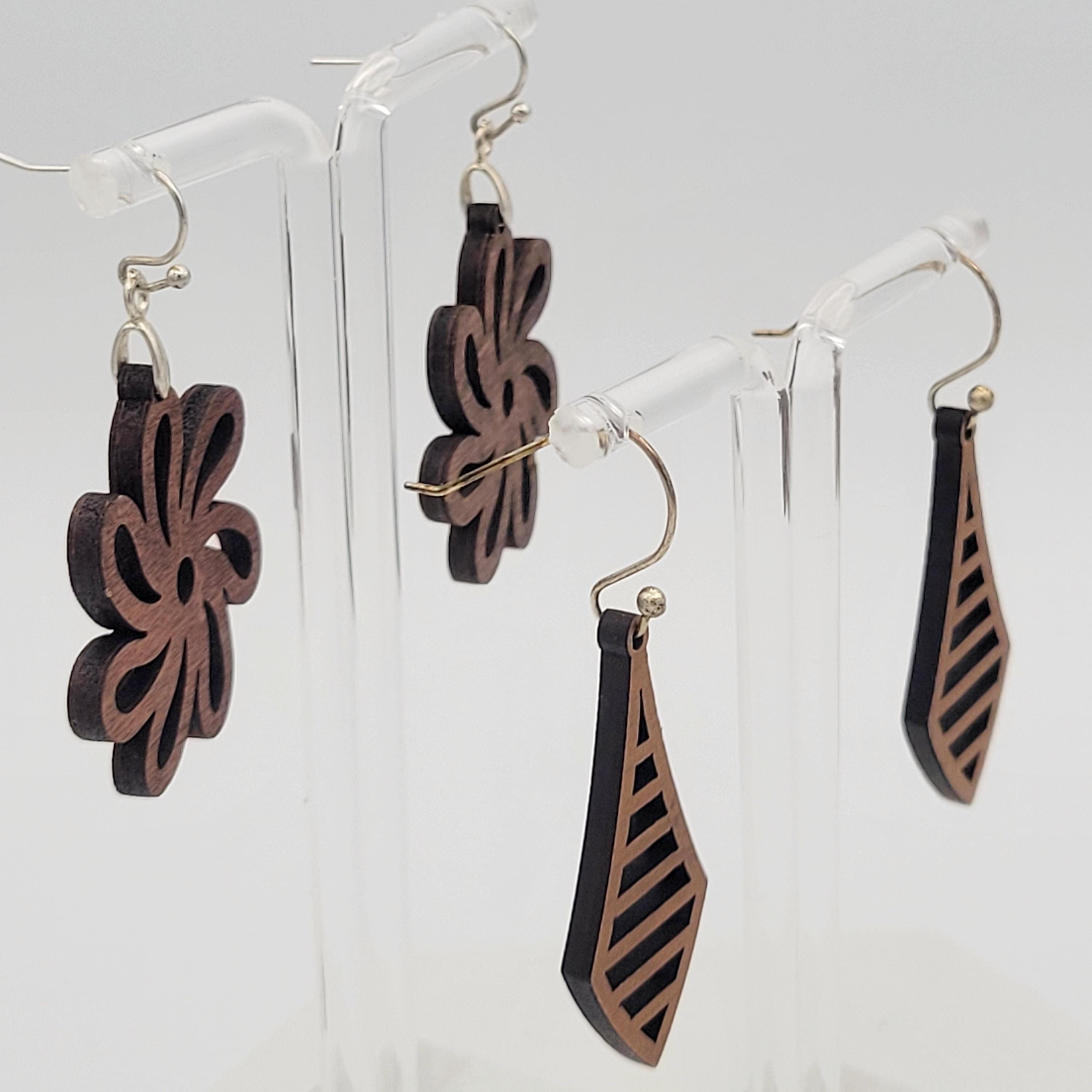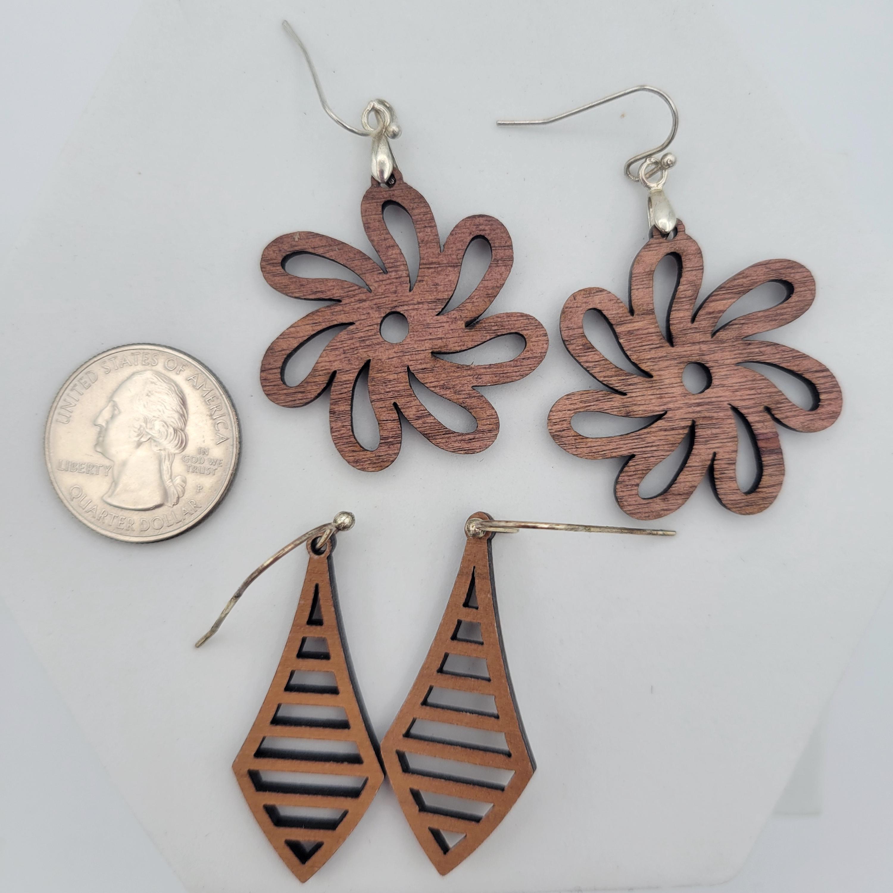 Two Pairs of Vintage Openwork Wooden Dangle Earrings