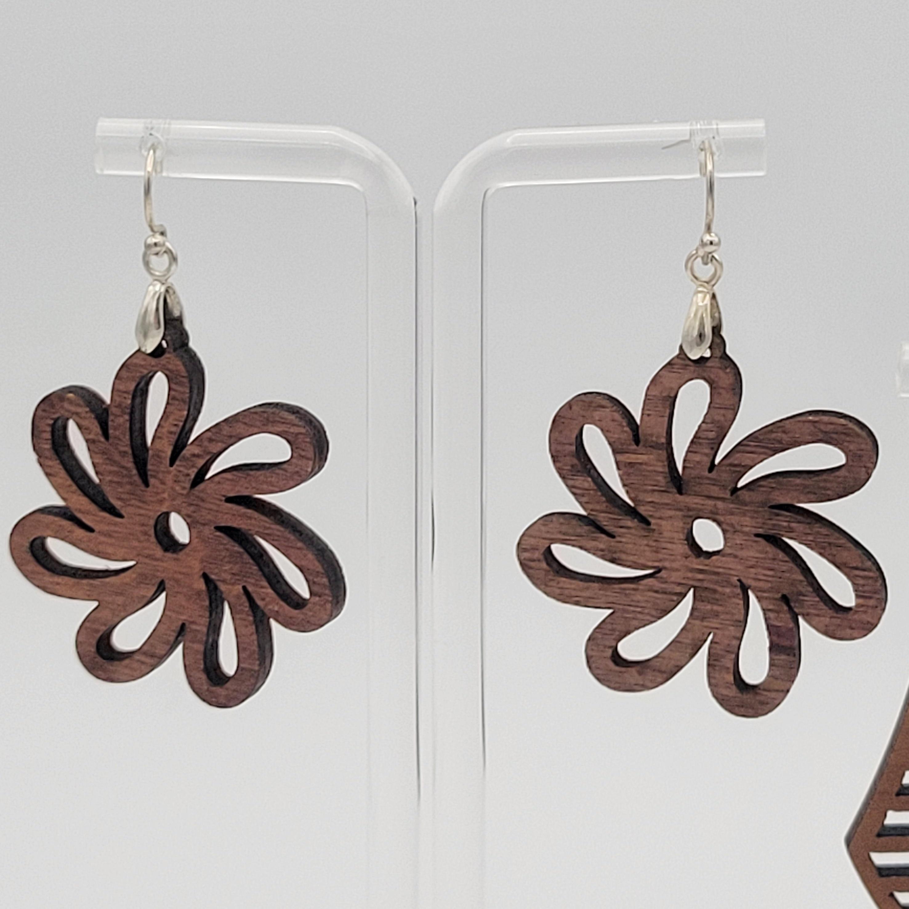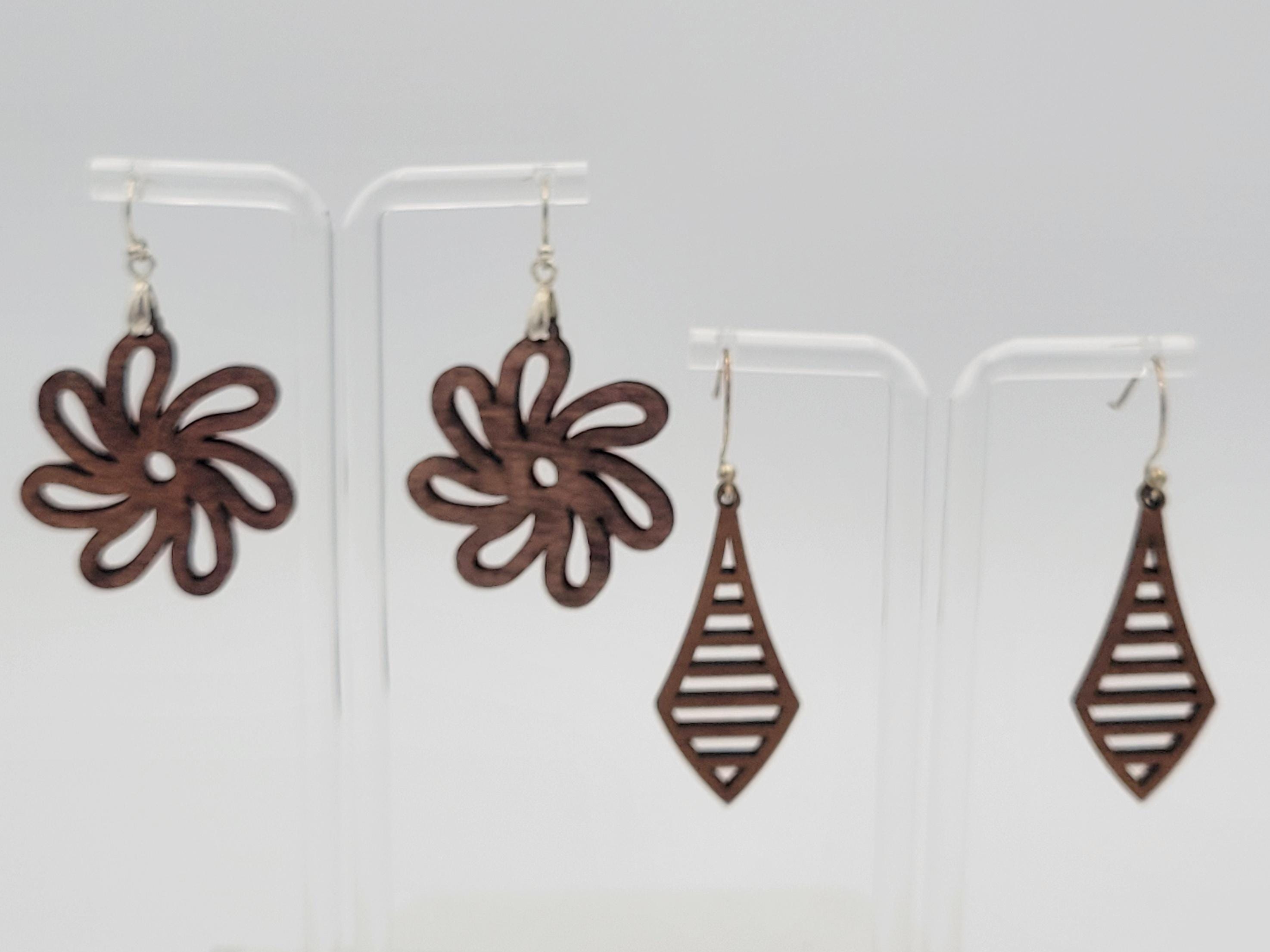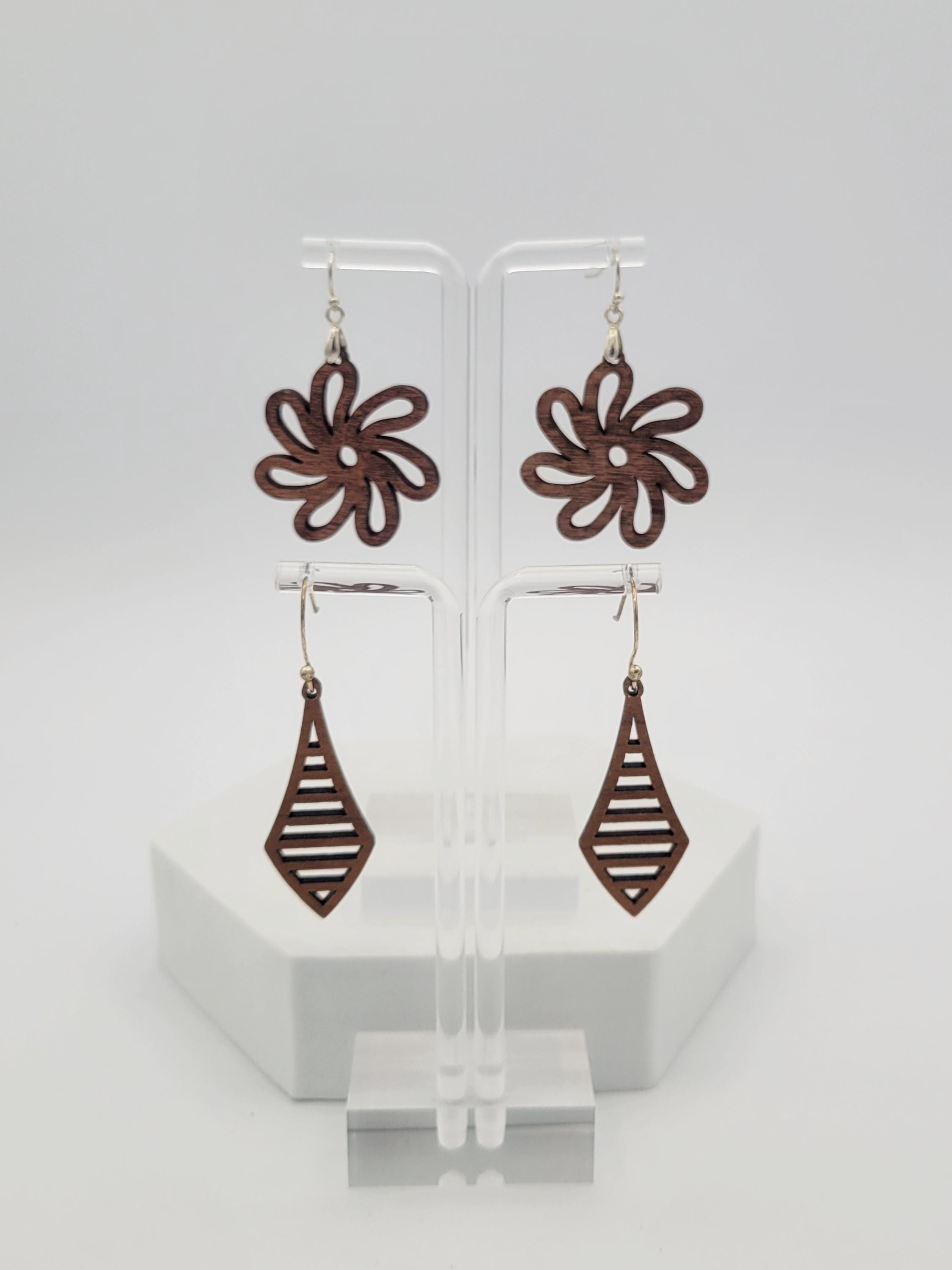 Two Pairs of Vintage Openwork Wooden Dangle Earrings