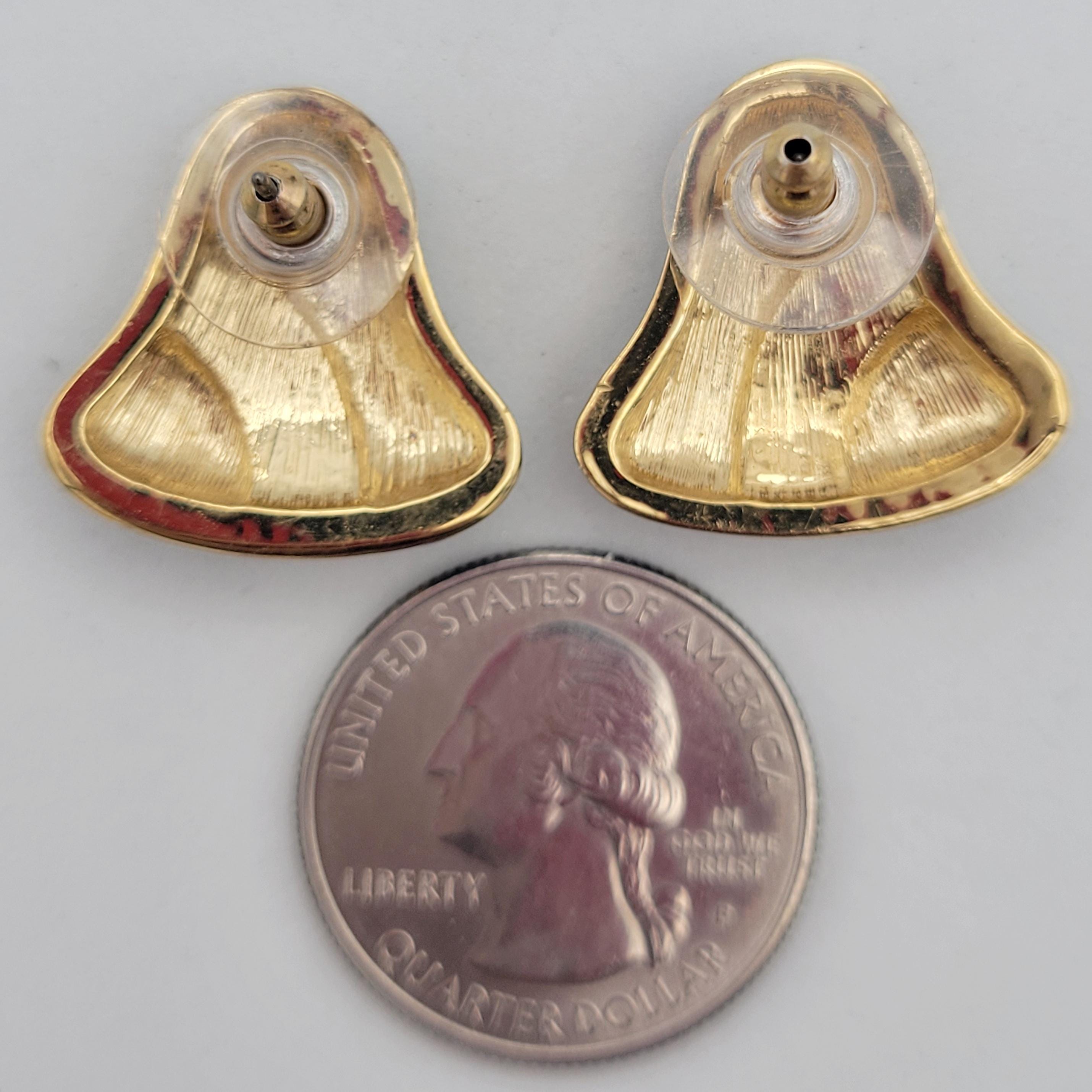 Vintage Gold Tone Domed Bell Shaped Stud Earrings with Blue and Green & Rhinestones