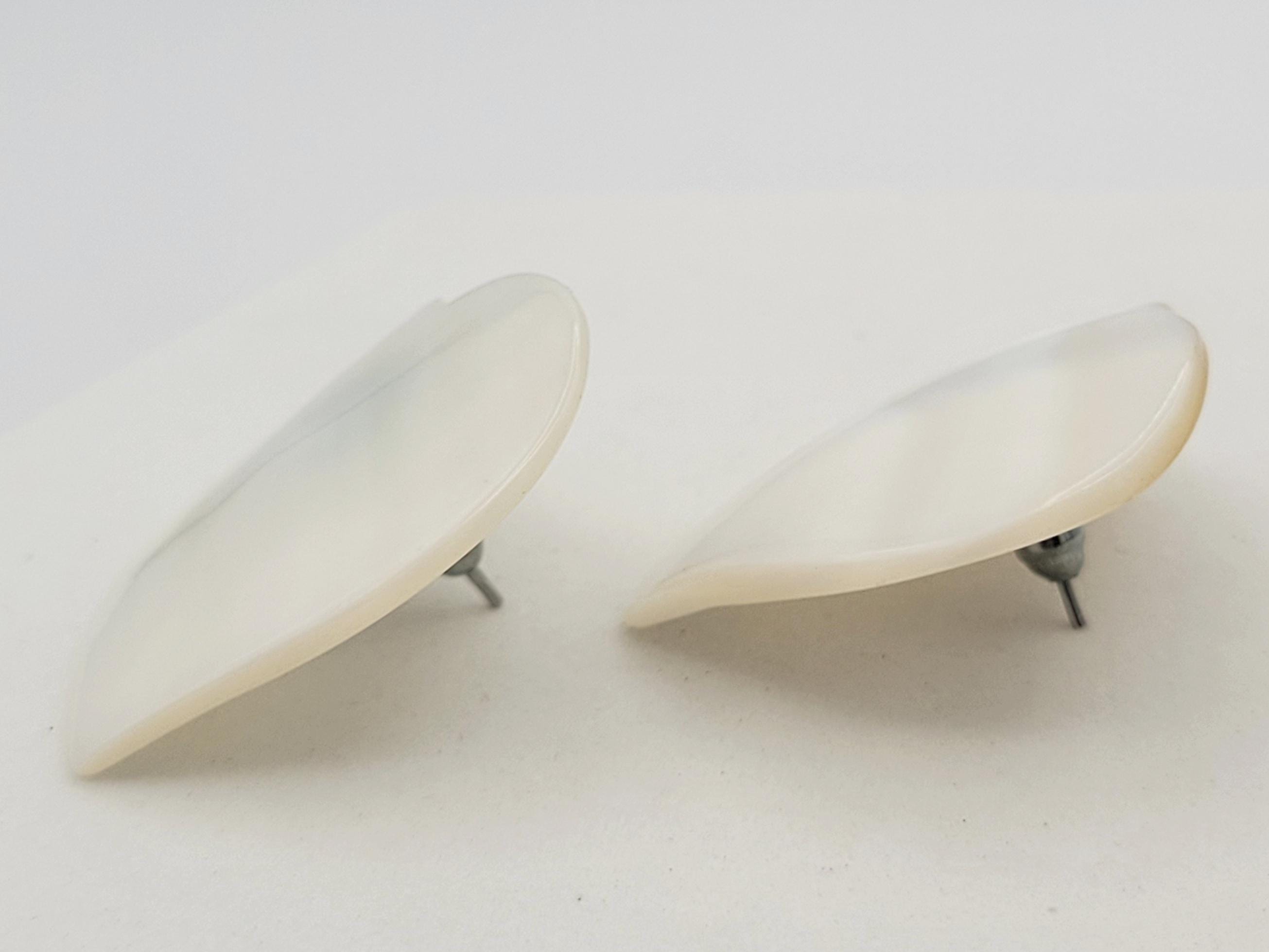 Vintage Oversize Heart Shaped Domed Seashell Stud Earrings
