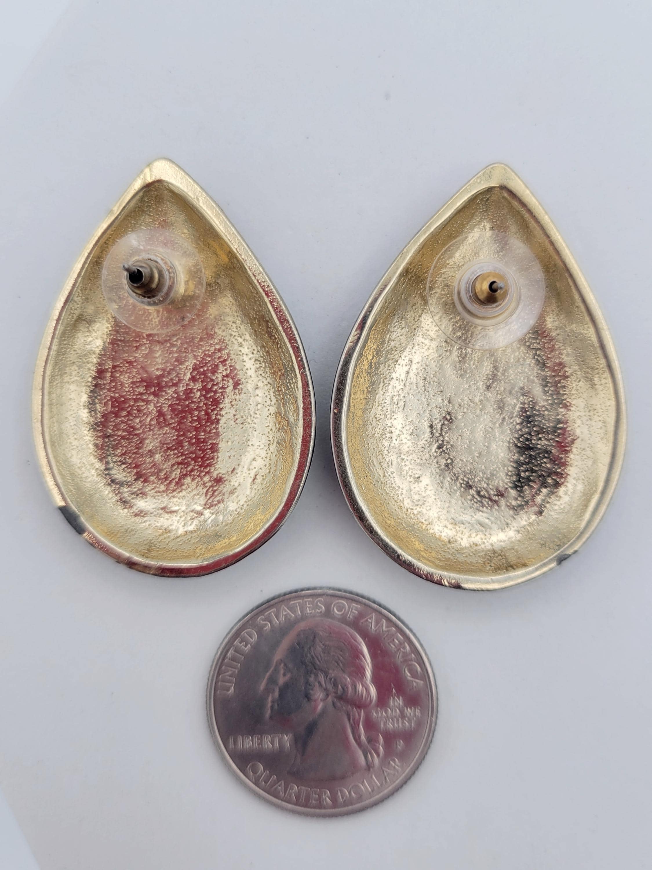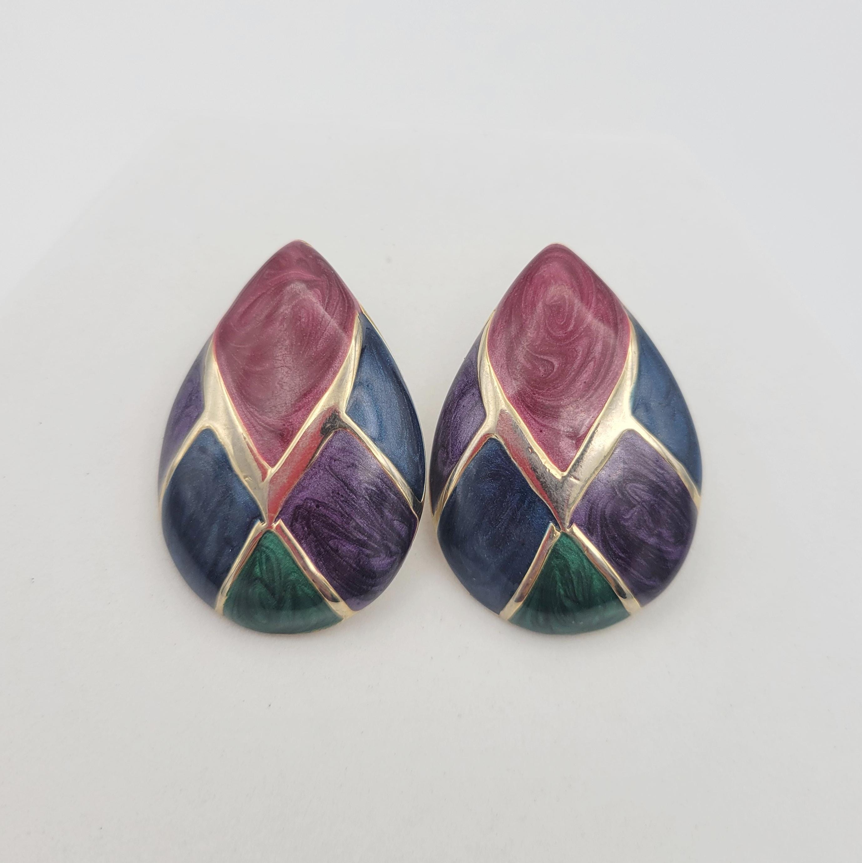 Vintage 1990s Chunky Oversize Gold Tone TeardropStud Earrings with Jewel Tone Enamel