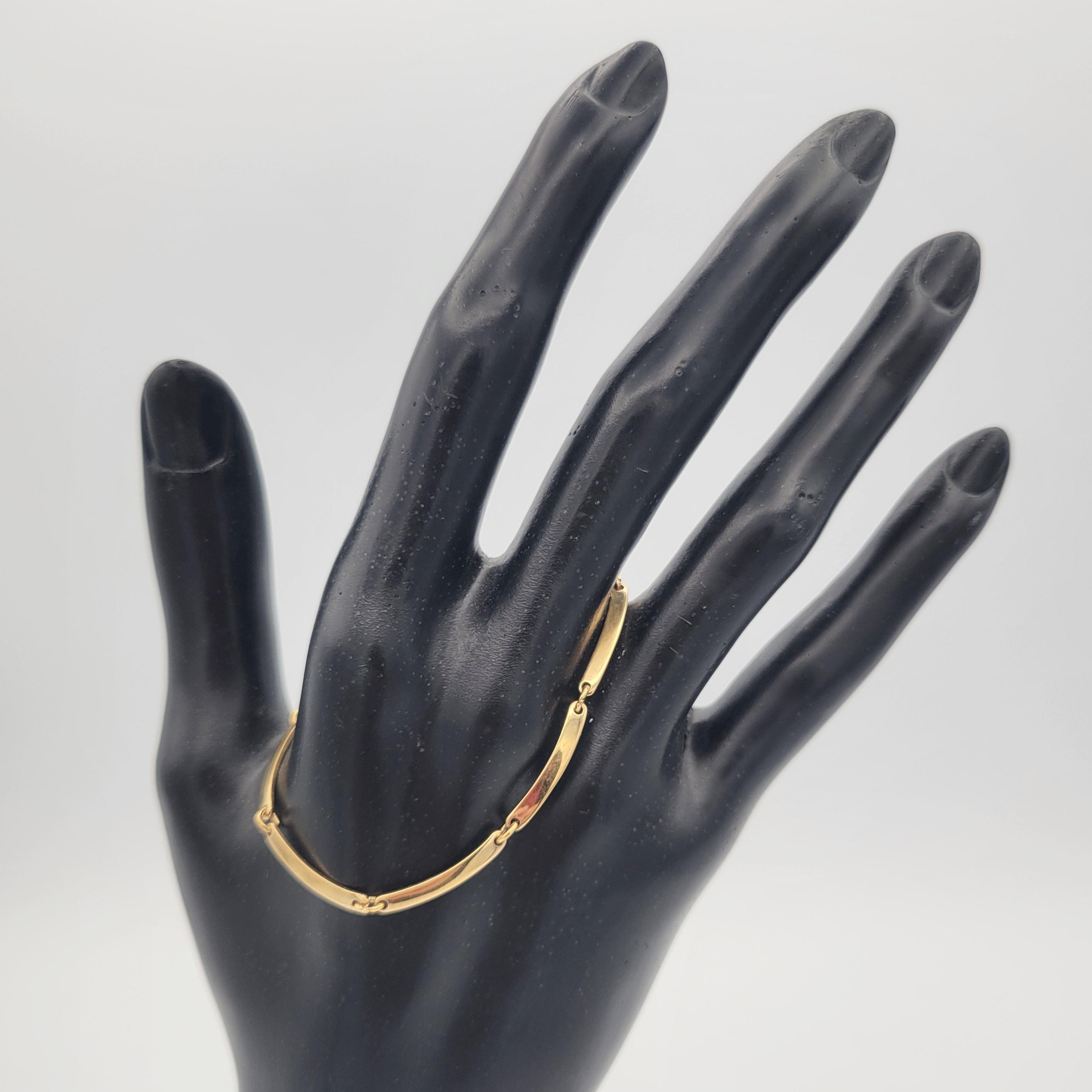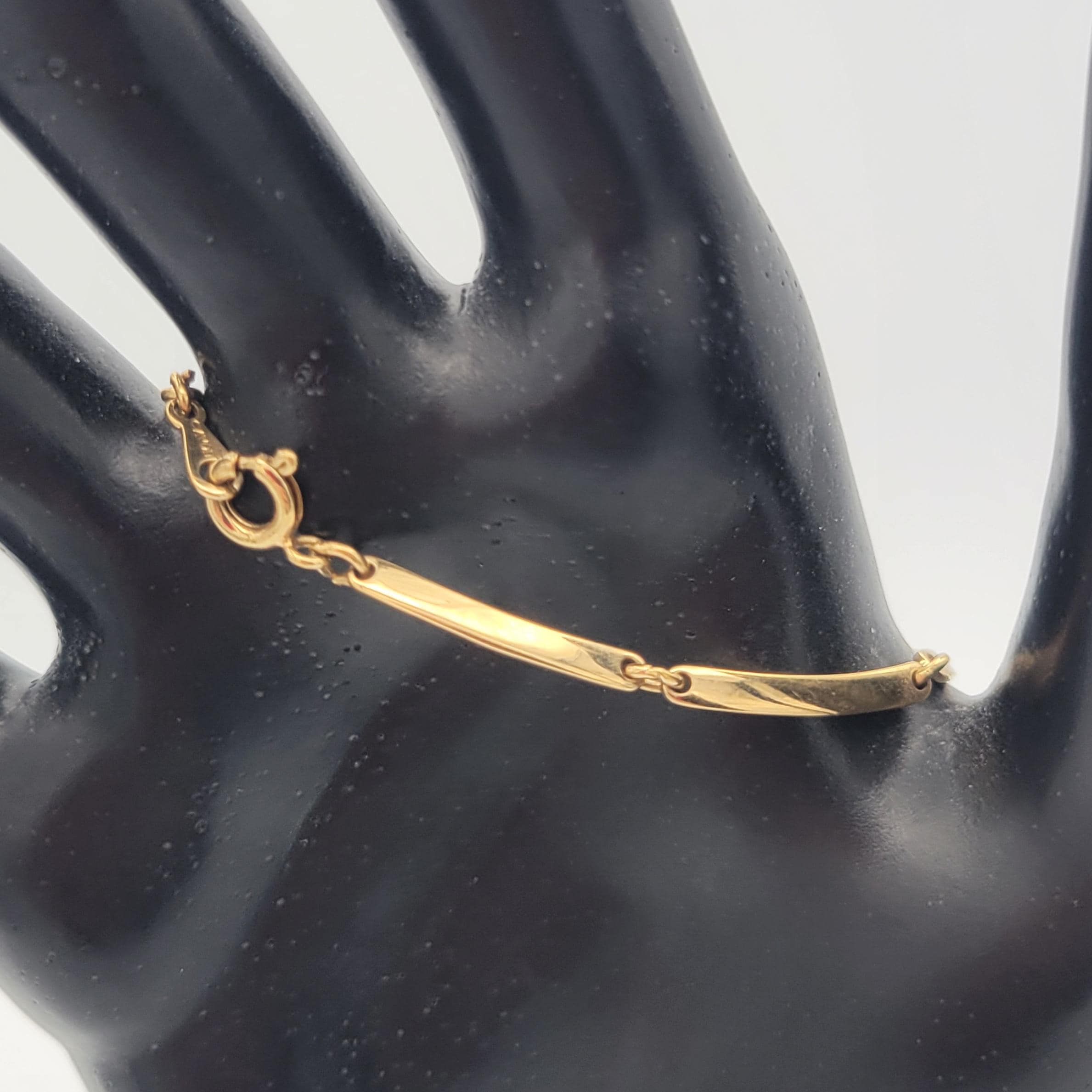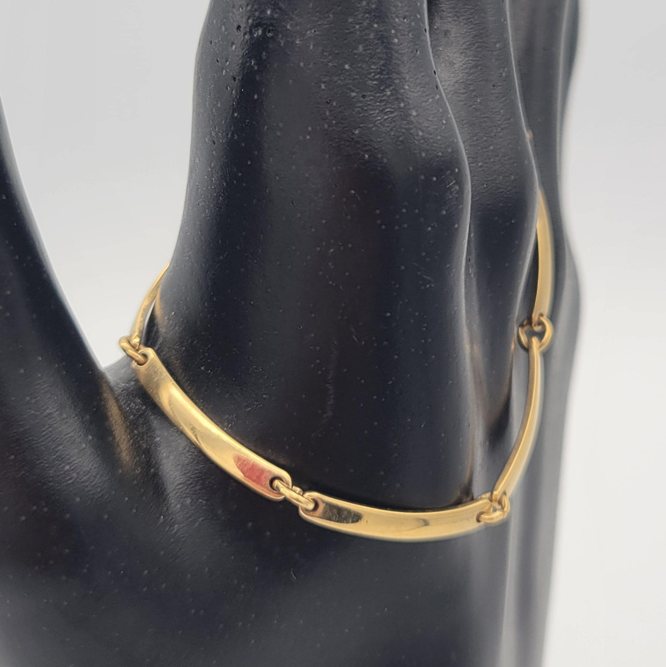 This shining bracelet from Avon makes a great accent piece. The small curved rectangular bar links are secured with a spring-ring clasp. This piece is in excellent, nearly new condition.