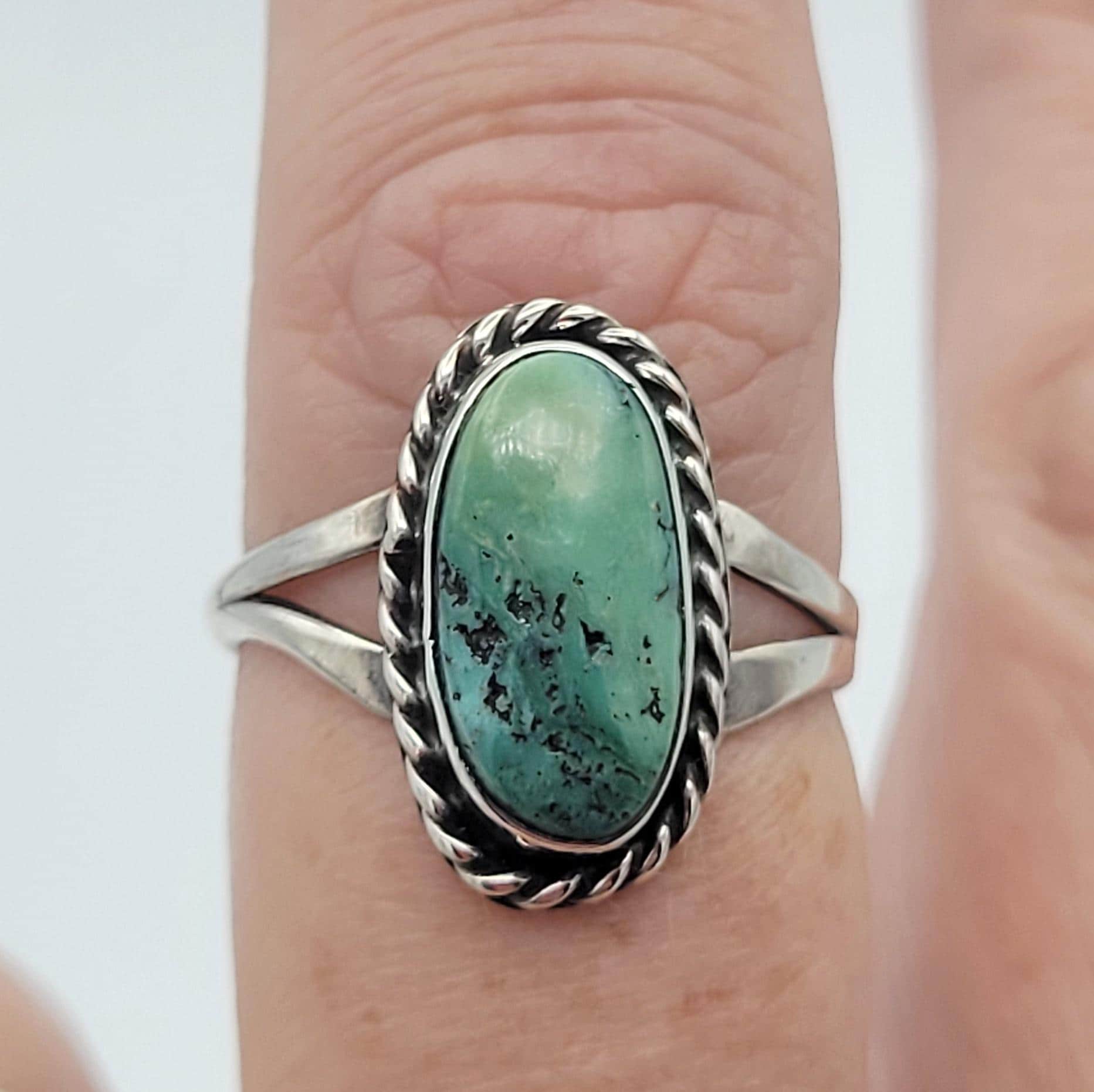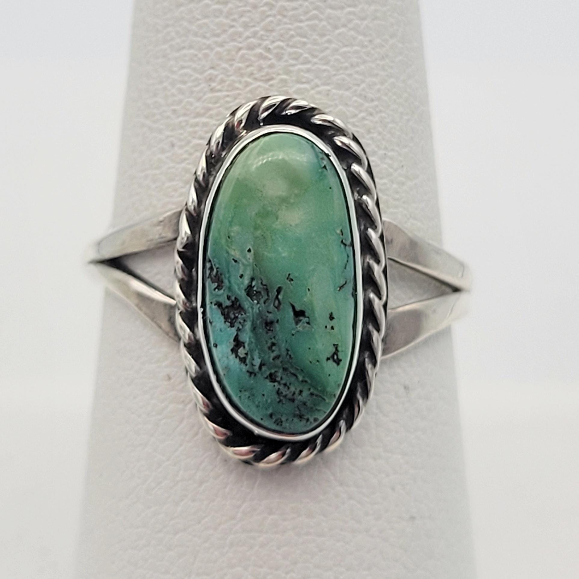 Vintage .925 Sterling Silver & Turquoise Oval Statement Ring