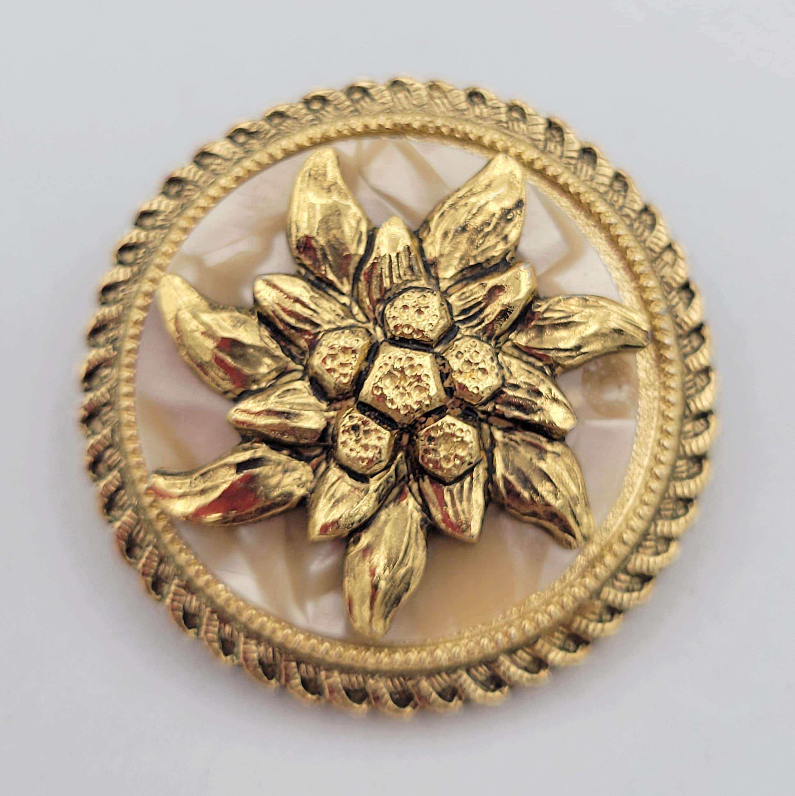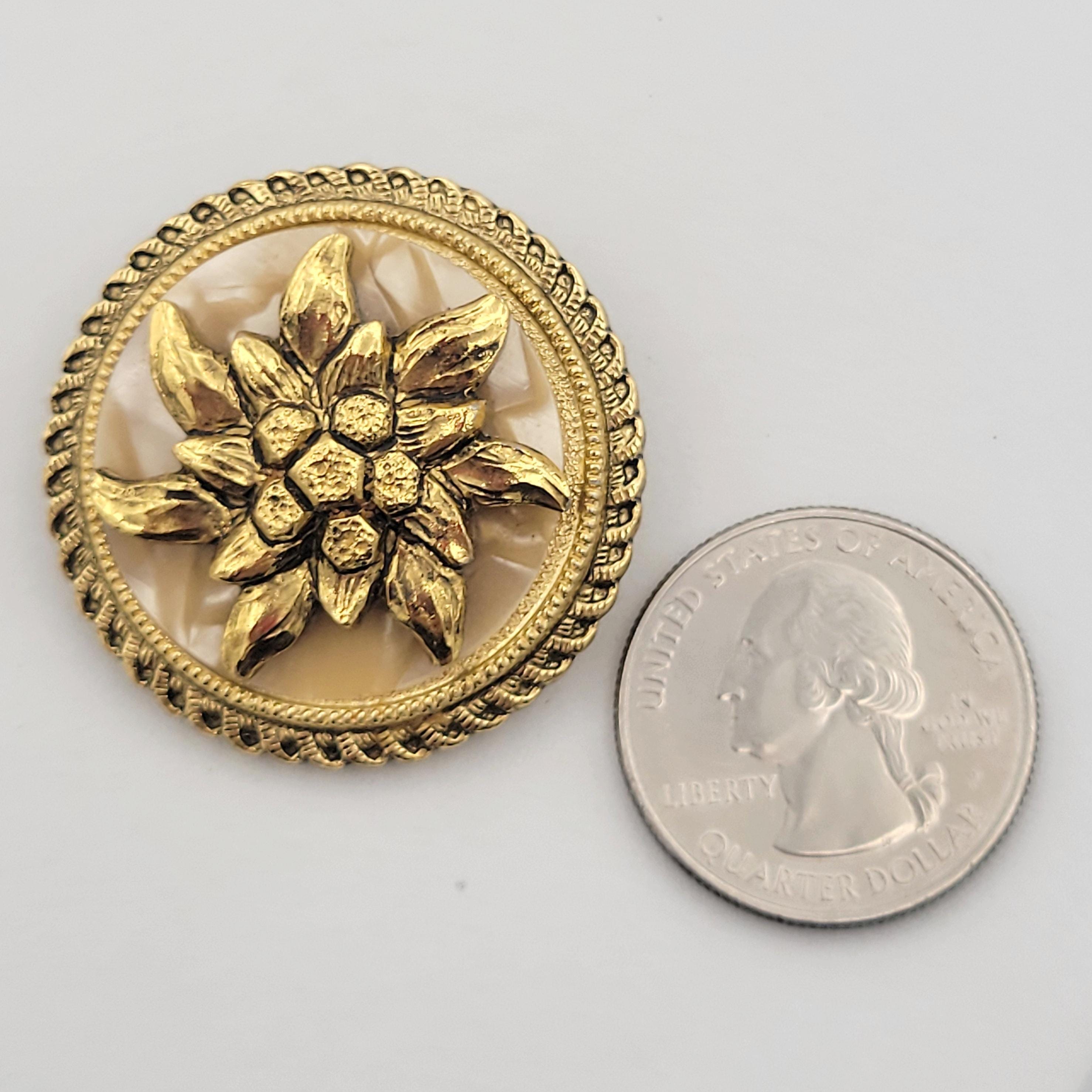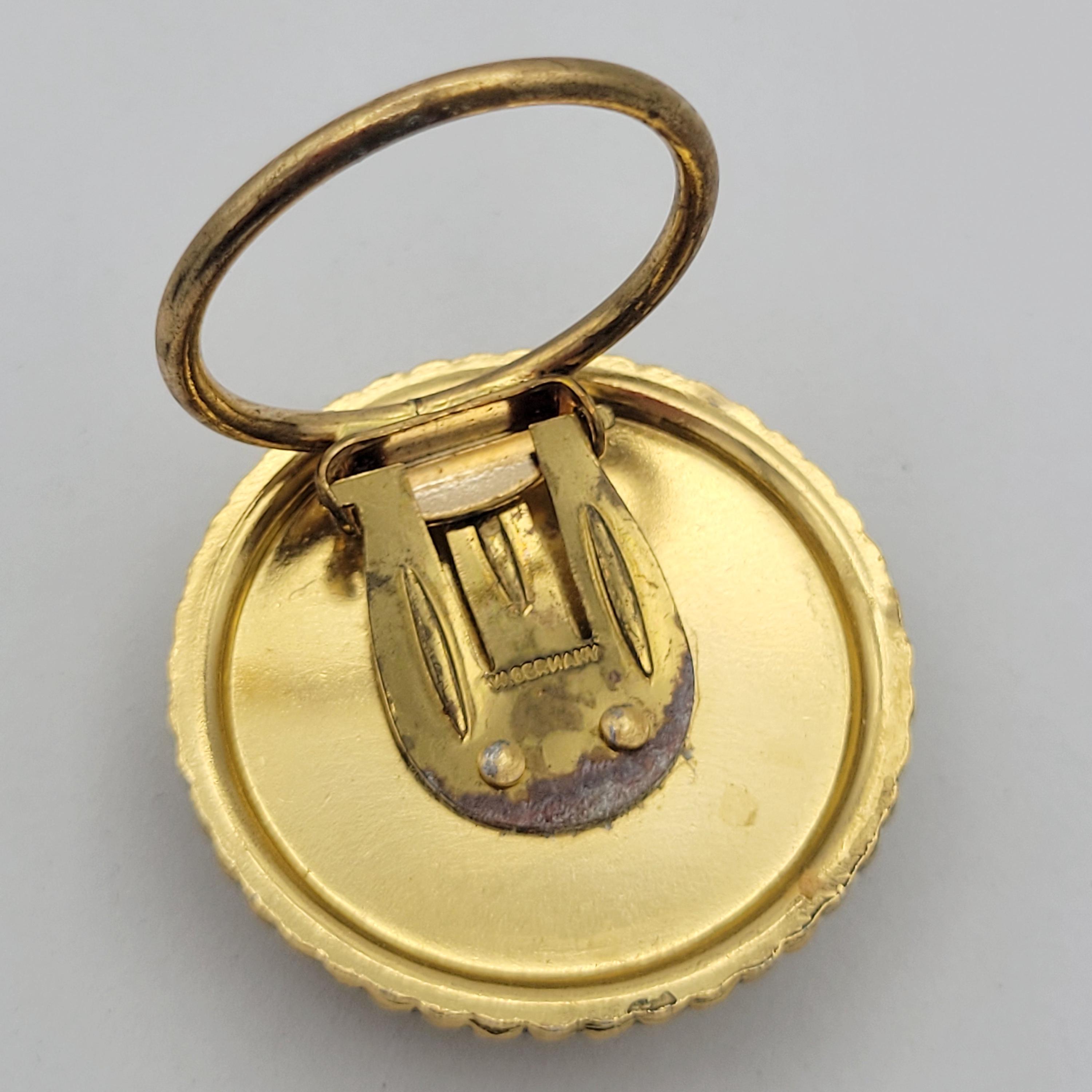 Vintage 1960s Western Germany Gold Tone Circular Floral Scarf Clip with Mother of Pearl