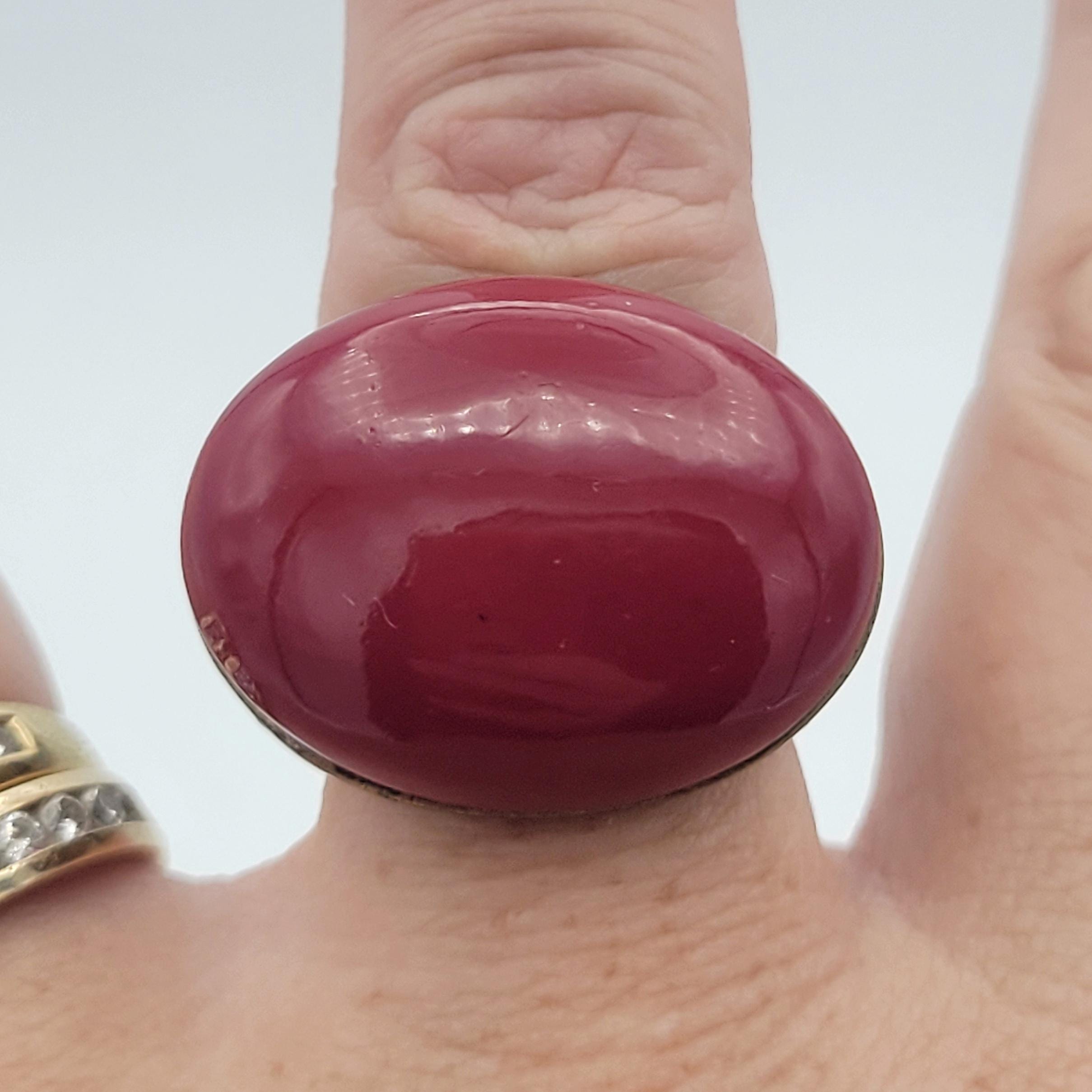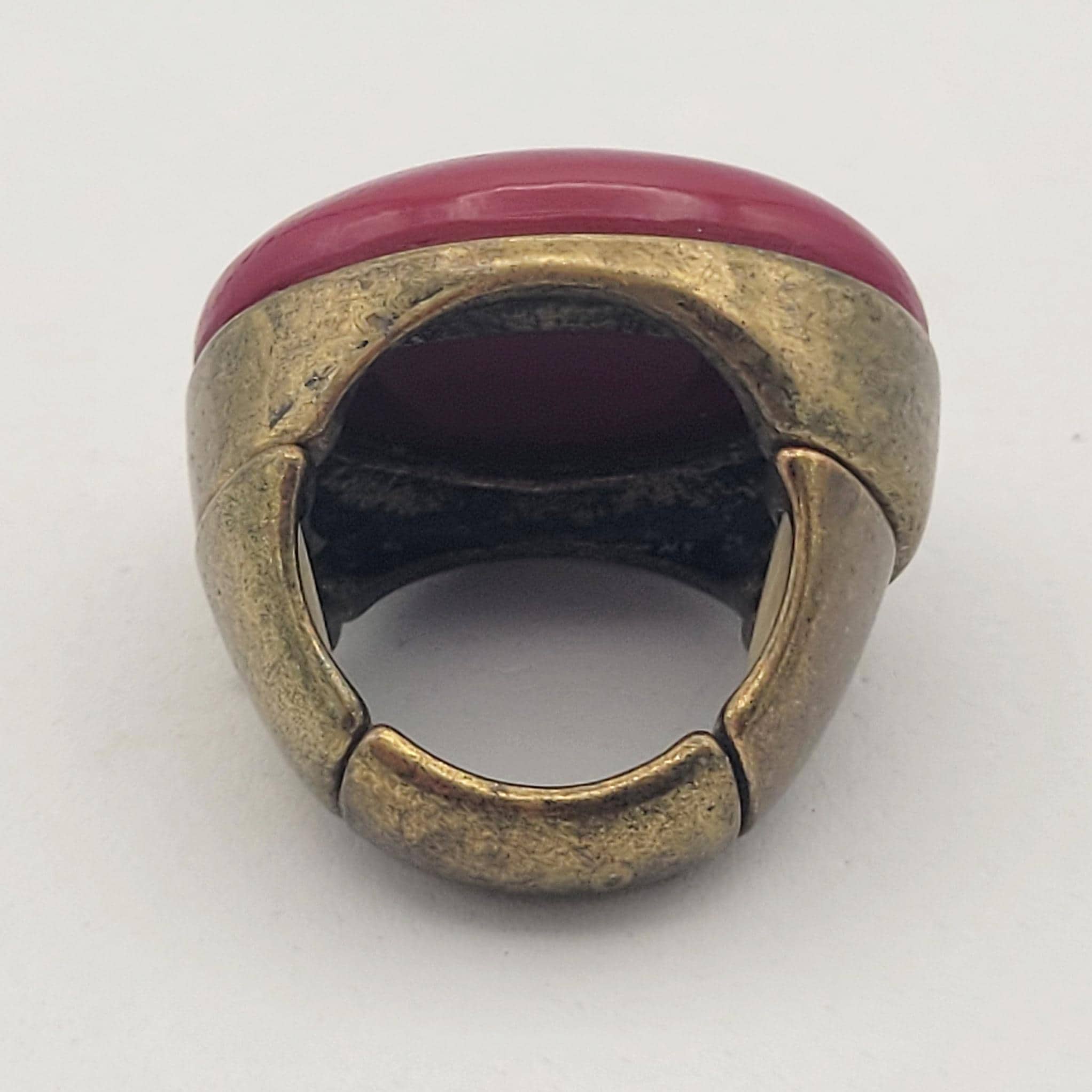 Vintage Oversize Antique Gold Tone Stretch Cocktail Ring with Raspberry Oval Cabochon