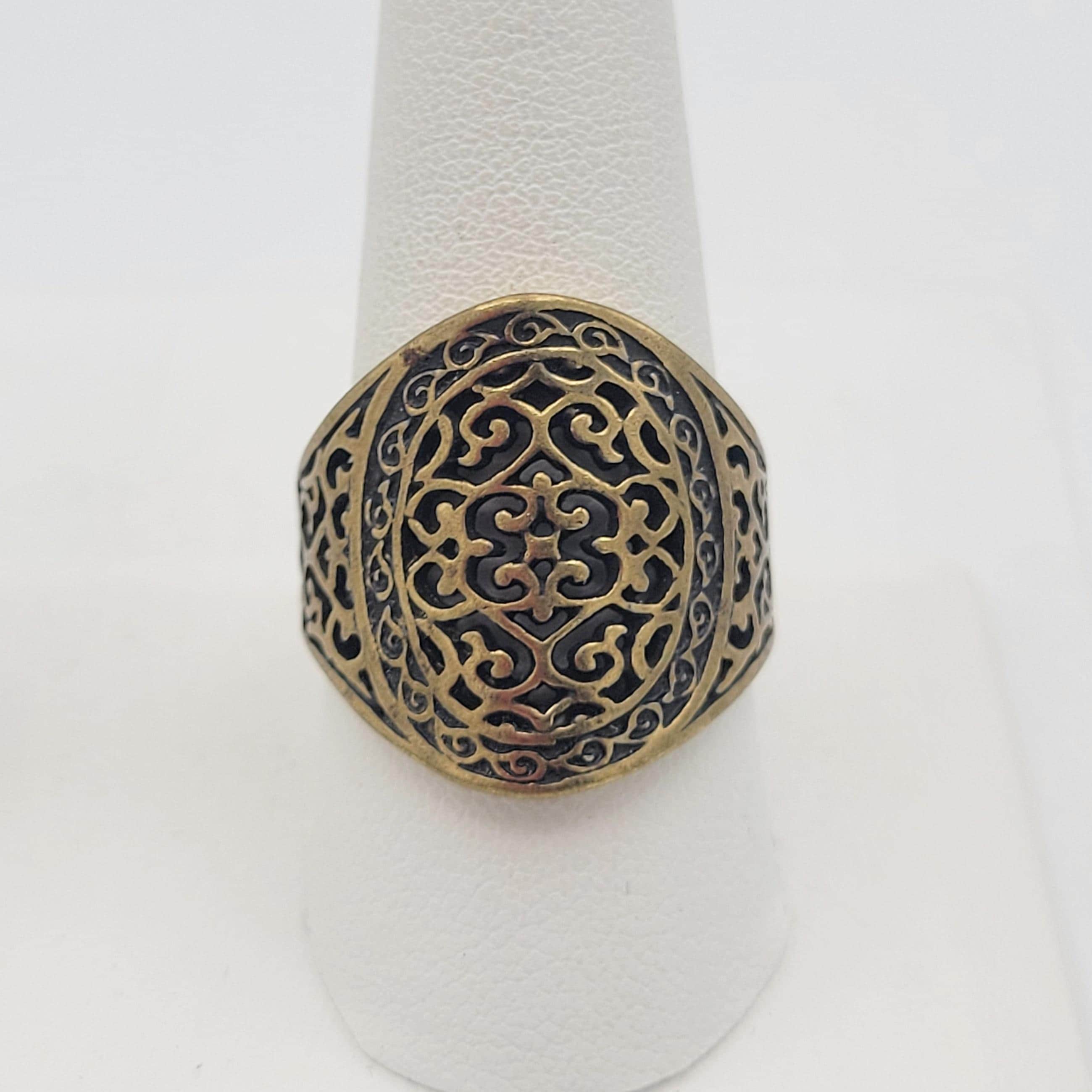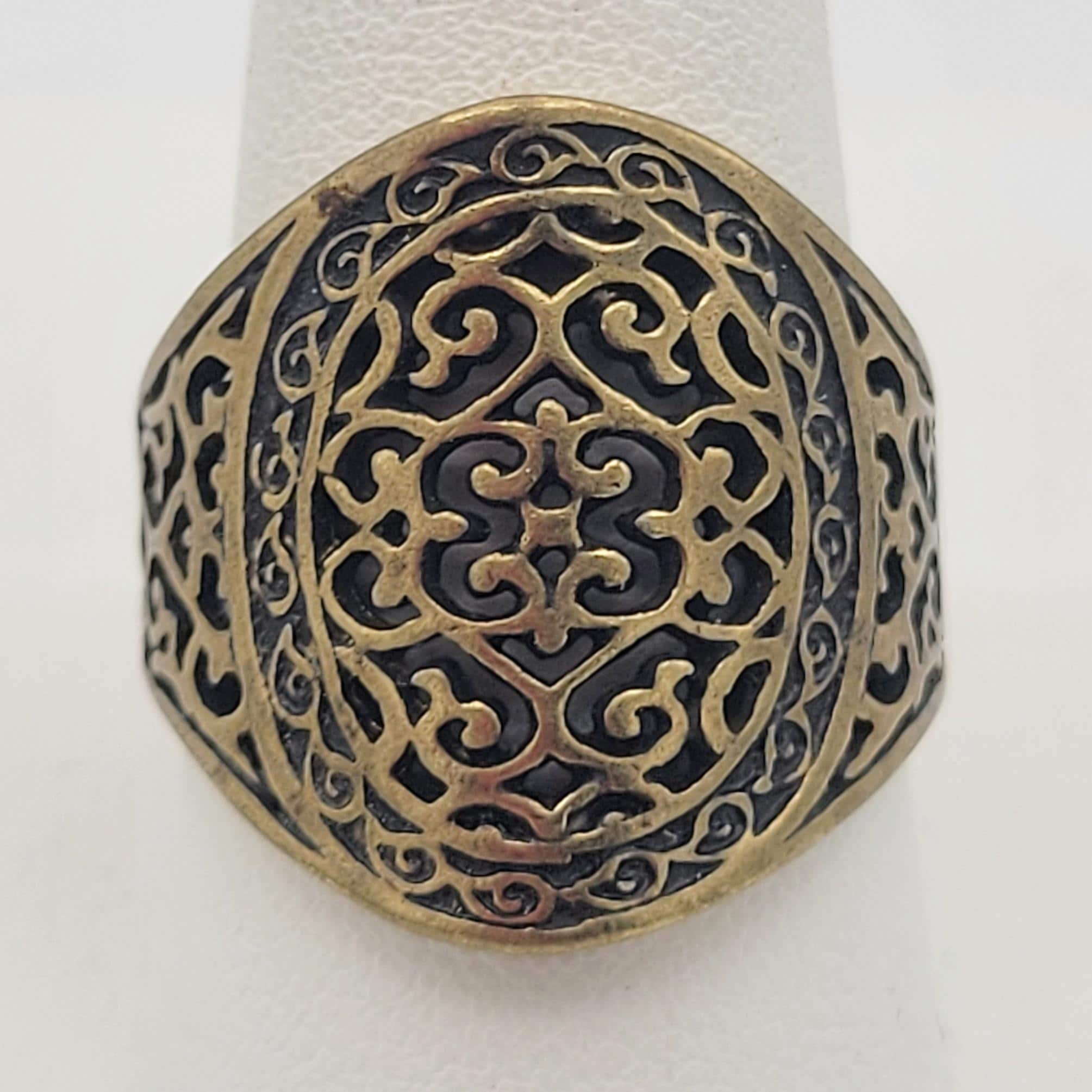Vintage Premier Designs Jasmine Ring Oversize Antique Gold Tone Openwork Filigree