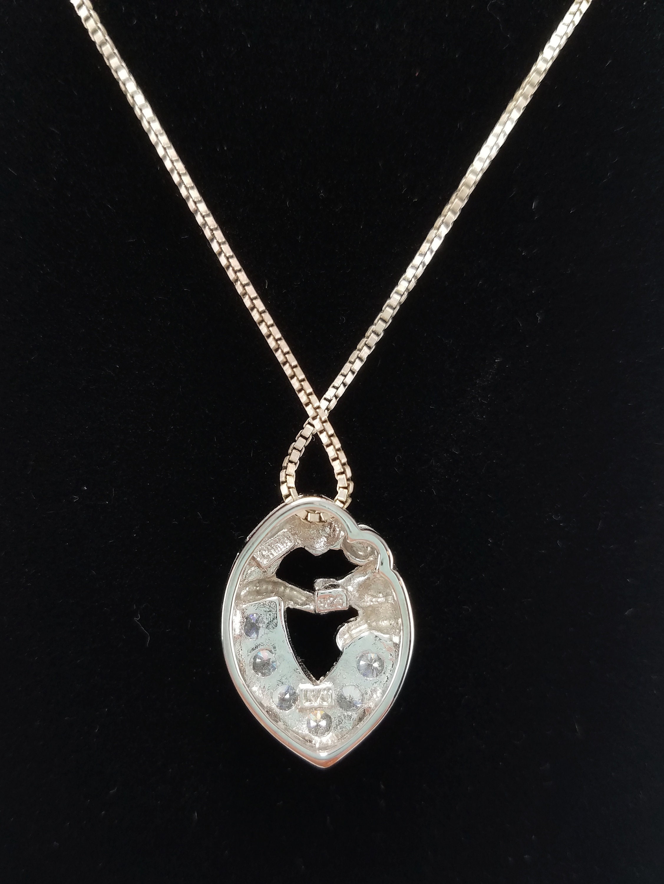 Vintage Signed LVJ .925 Sterling Silver Box Chain with Mother & Child Cubic Zirconia Pendant Necklace