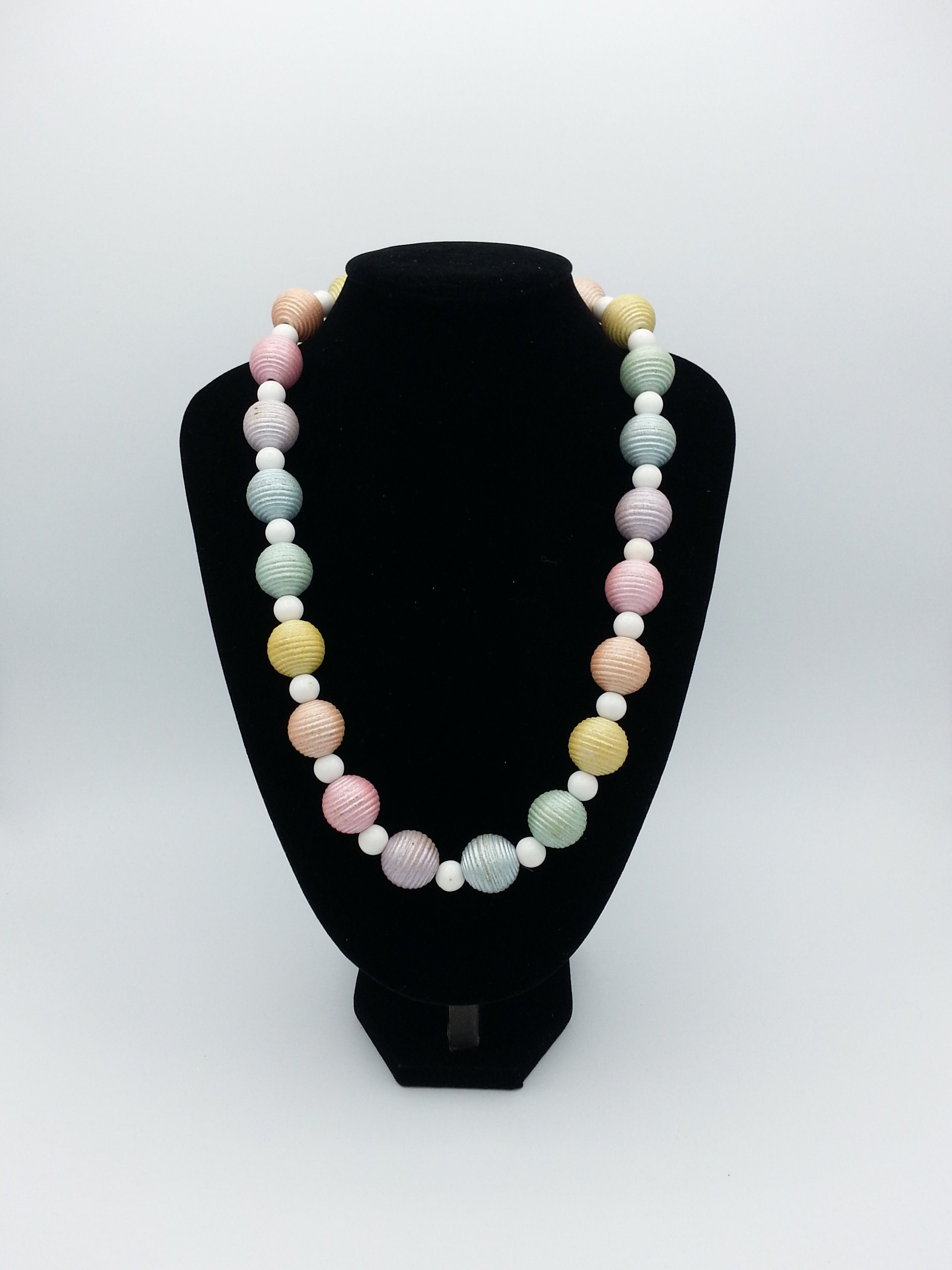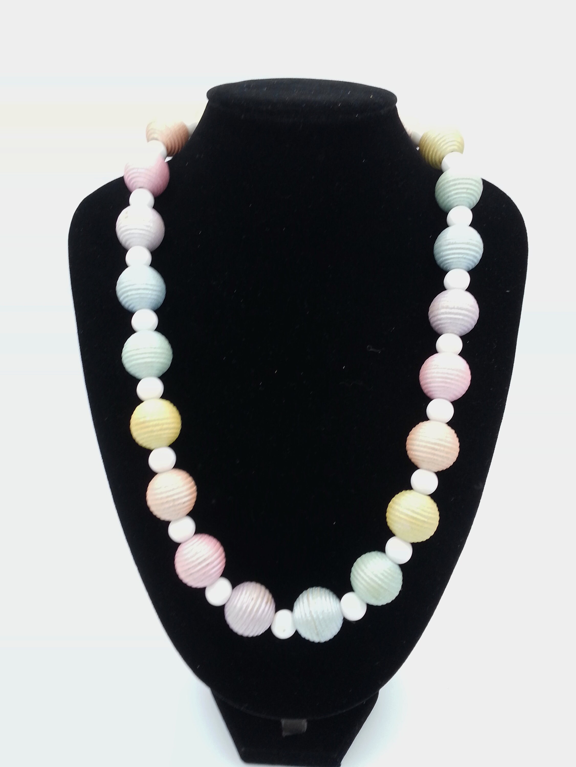 Vintage Rainbow Pastel Wood & Plastic Beaded Necklace